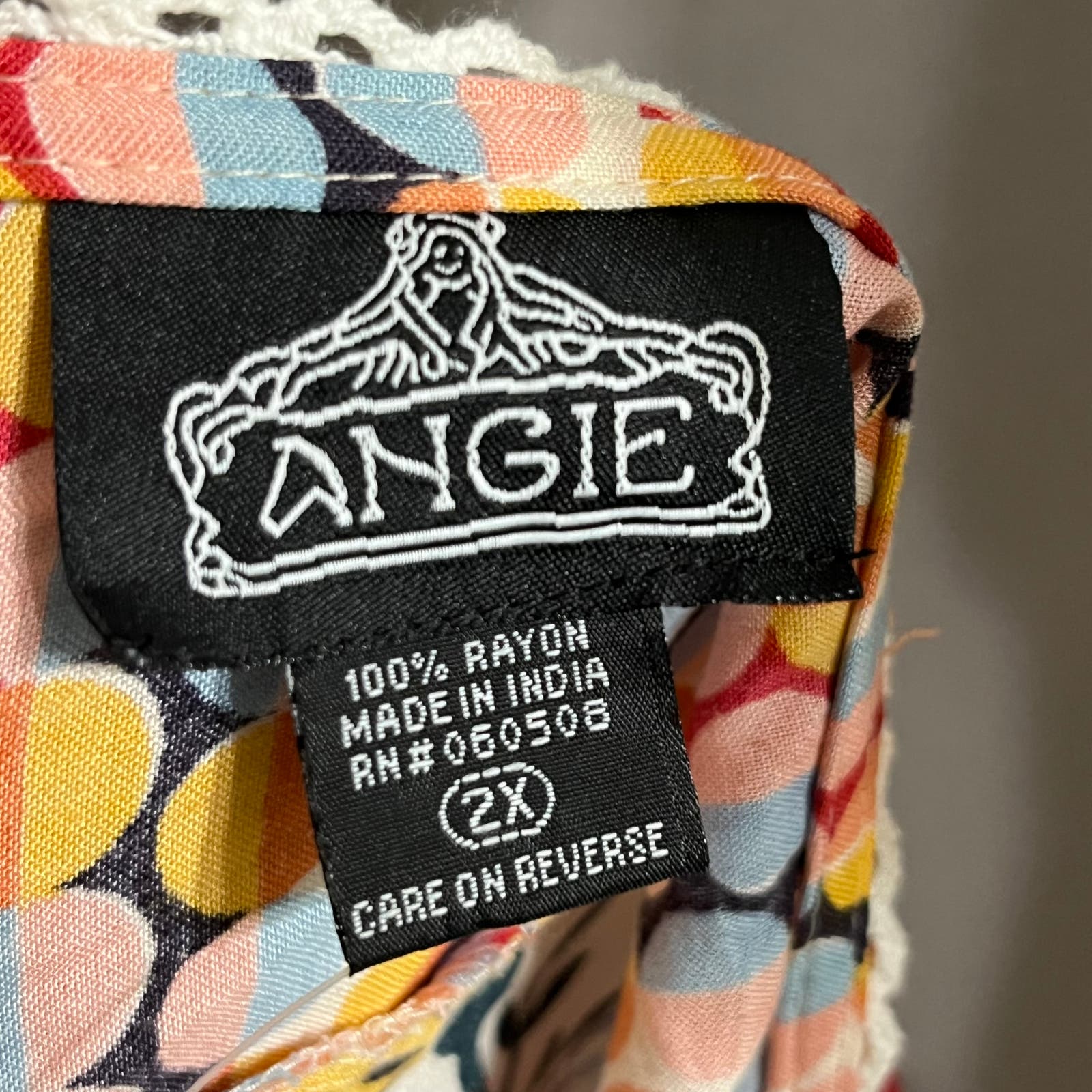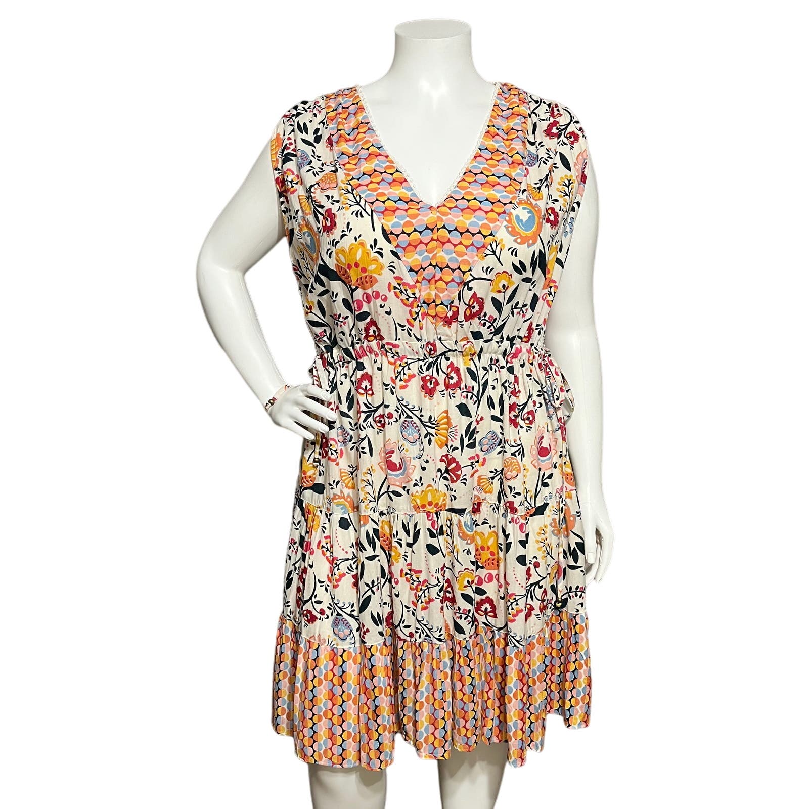Angie 100% Rayon Floral Sleeveless Drawstring Fit & Flare Sz-2X