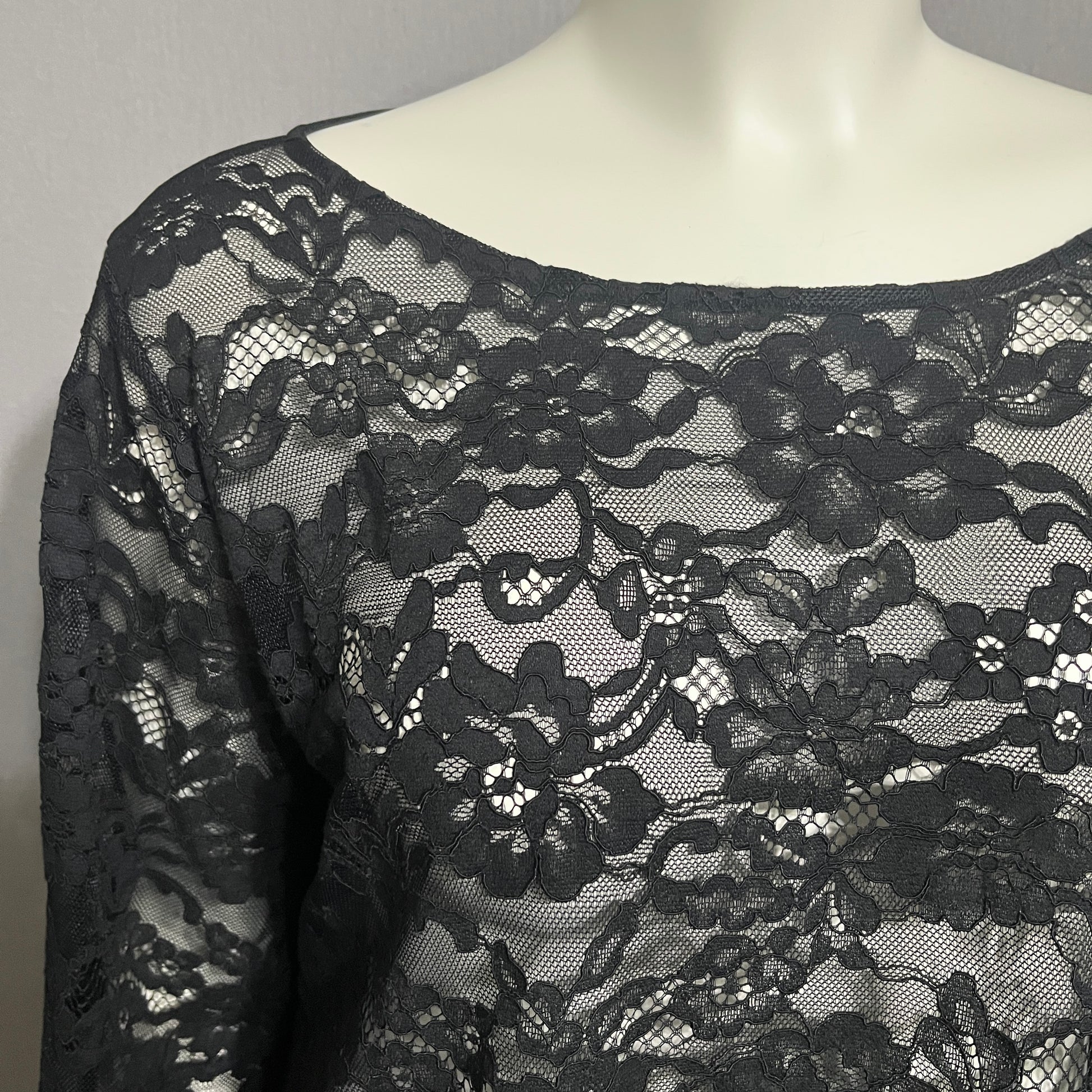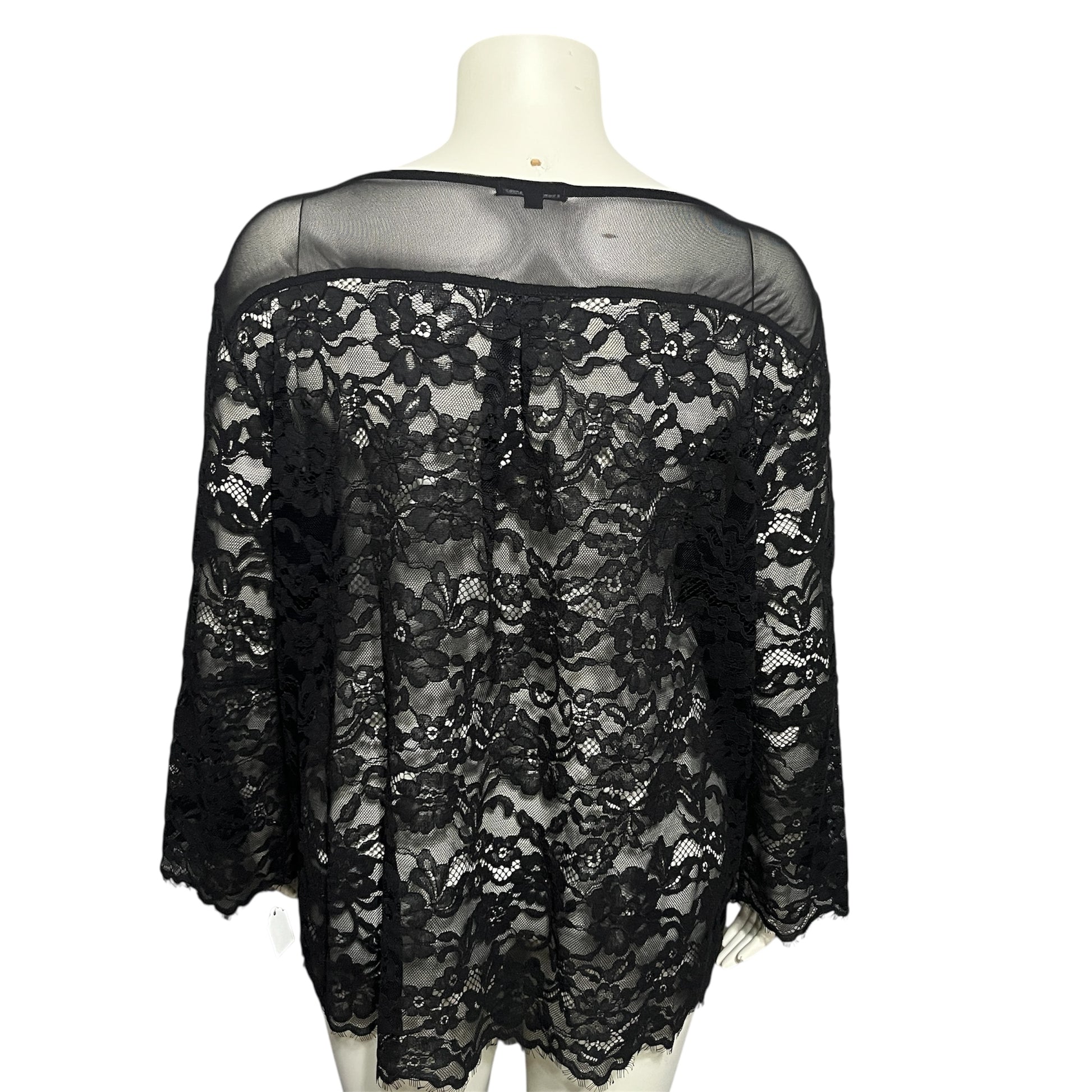 Anue Ligne Black Lace Flare Sleeve Top Sz-XL