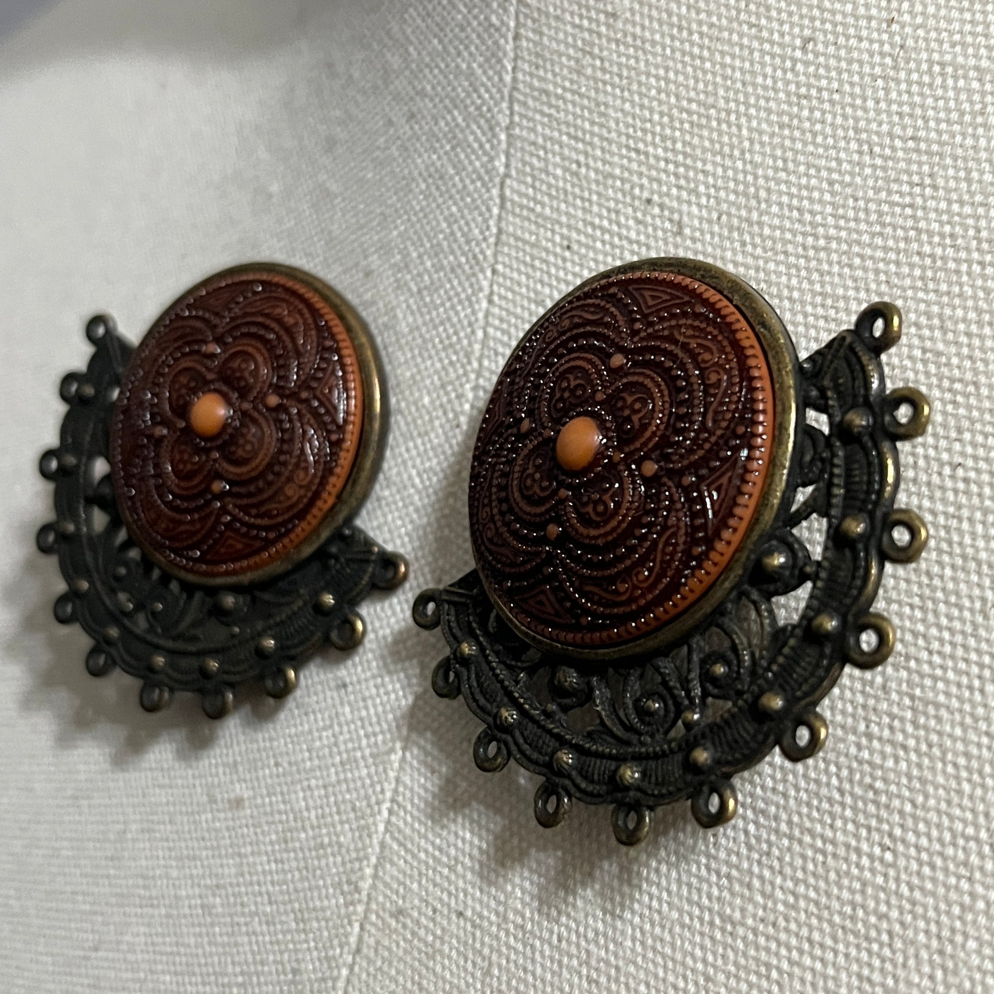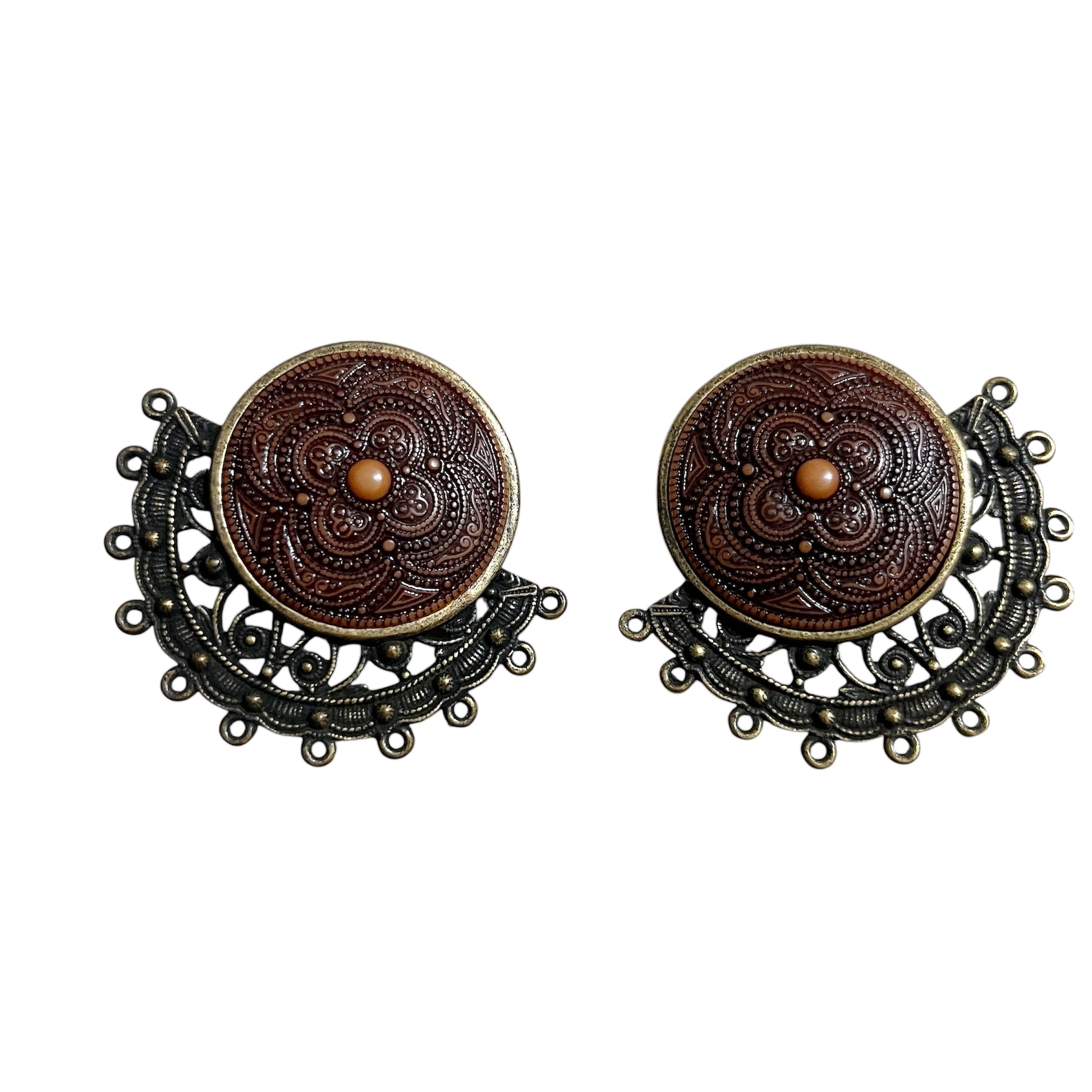 These elegant earrings feature a beautiful brown and gold design, perfect for adding a touch of sophistication to any outfit. Brand: