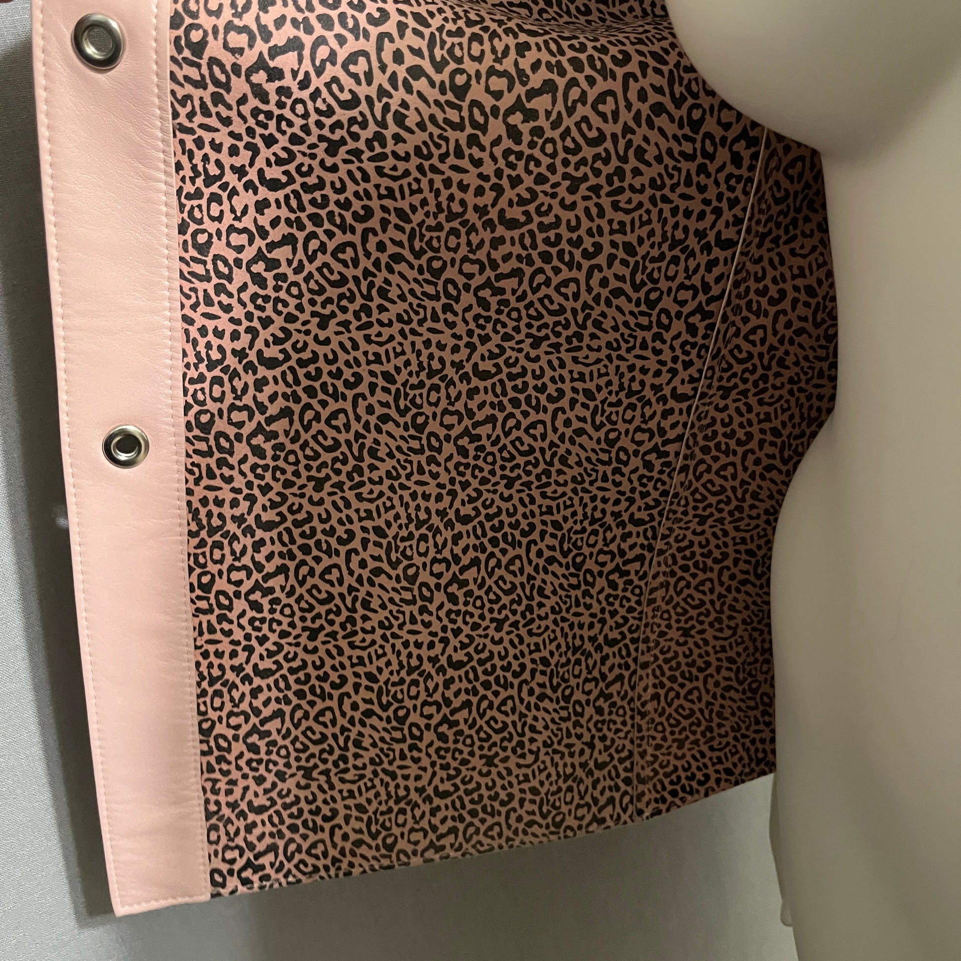 Stylish pink & leopard lining print jacket by Bart. Features a blend of pink and brown tones.
