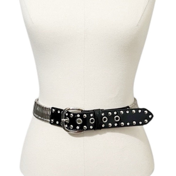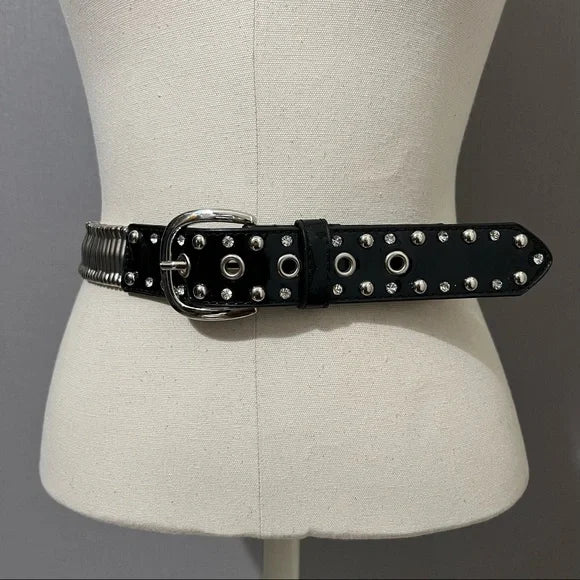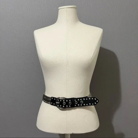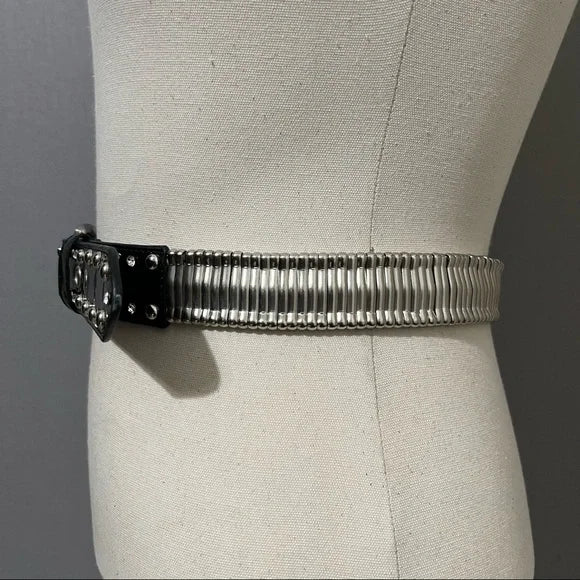Black Patent Leather With Silver Metal Detail Belt Sz-Small-Medium