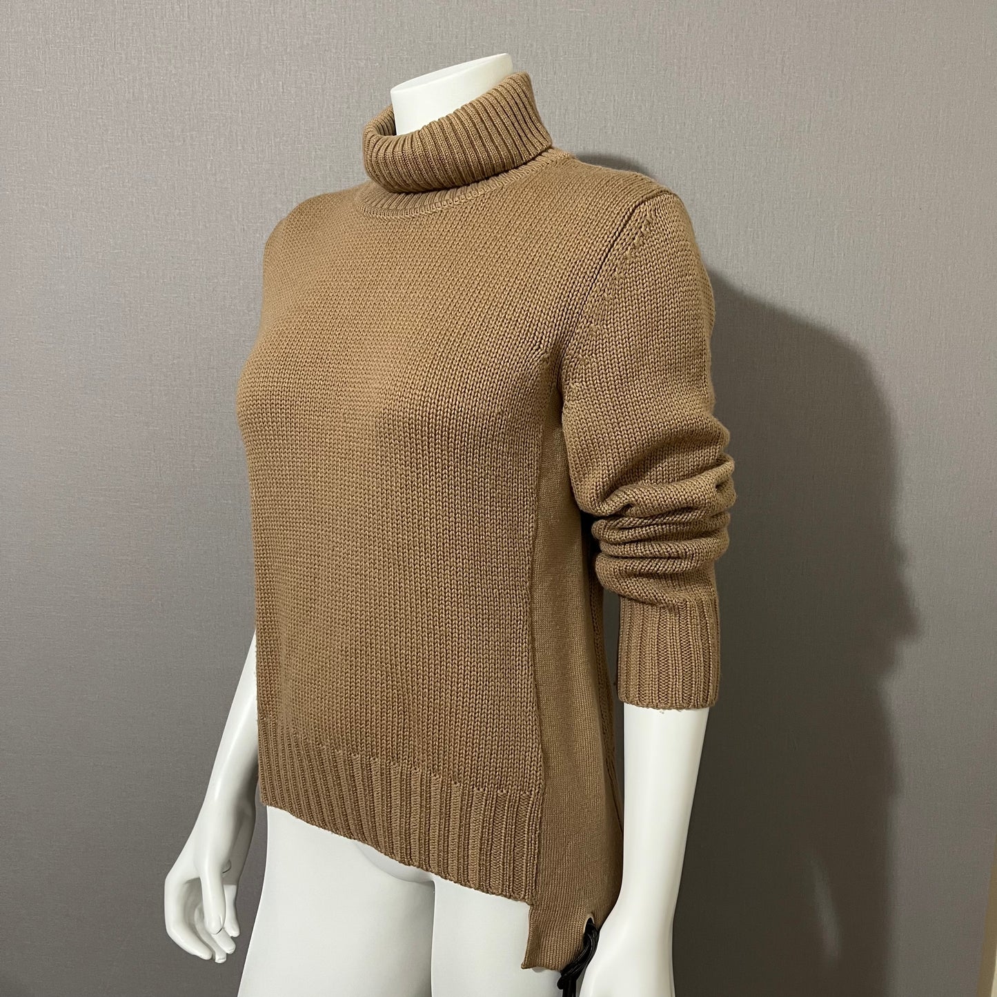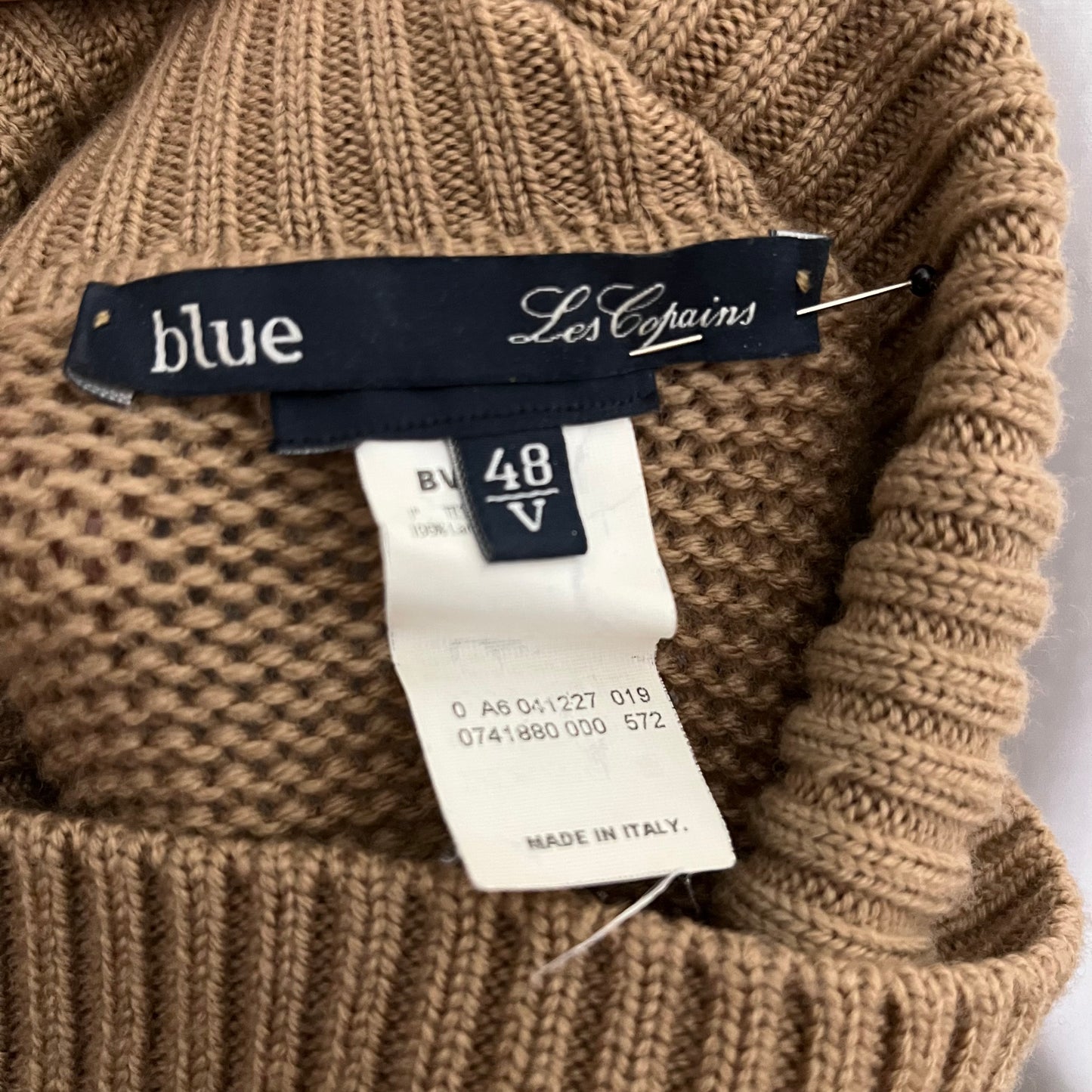 Details: Blue 100% lana wool camel tan turtleneck high low sweater, Gently used condition, please see photos for flaws! Please look through all photos for any flaws to verify the condition. Major flaws will be disclosed.