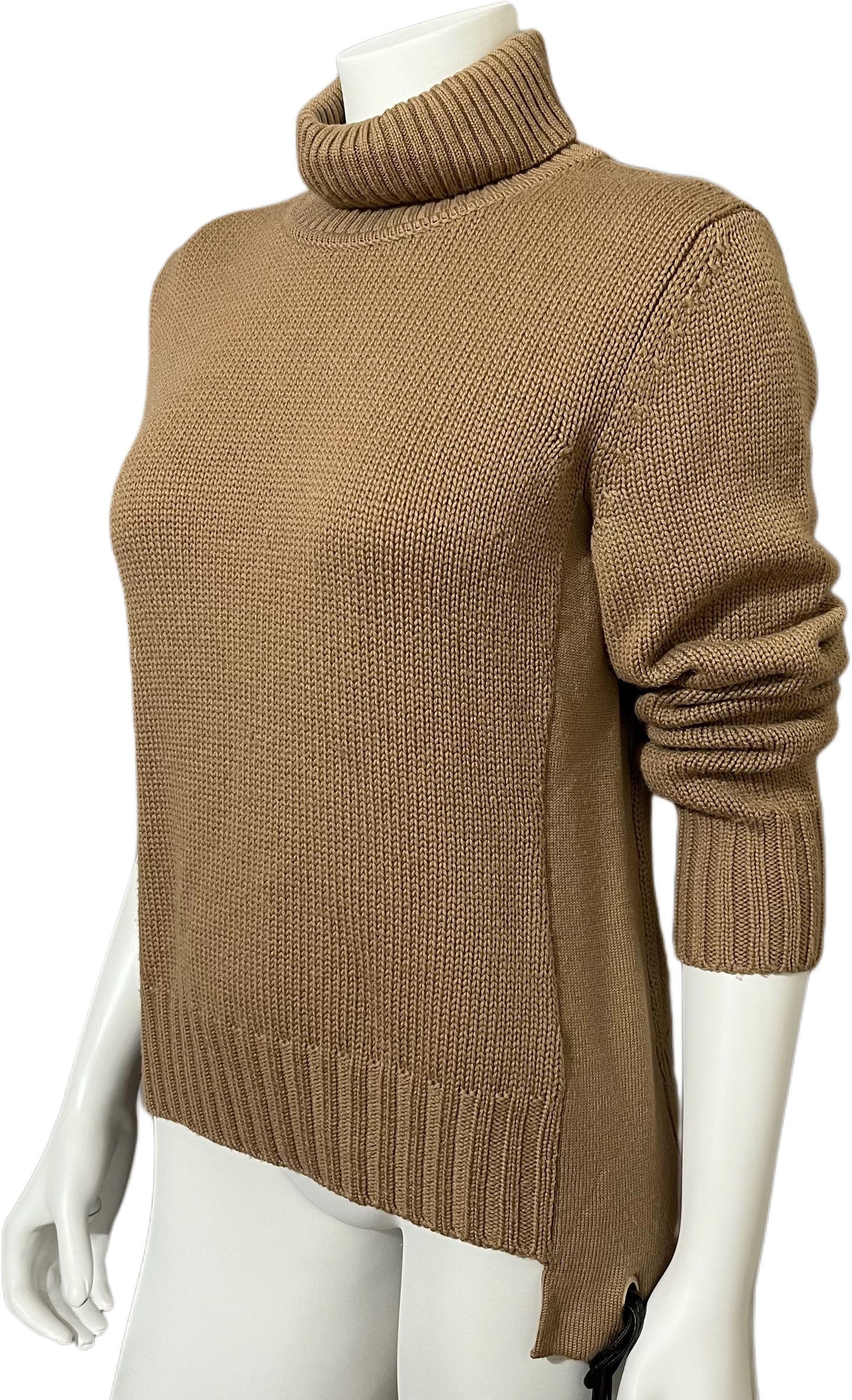Blue 100% Lana Wool Camel Tan Turtleneck High Low Sweater Sz-Medium