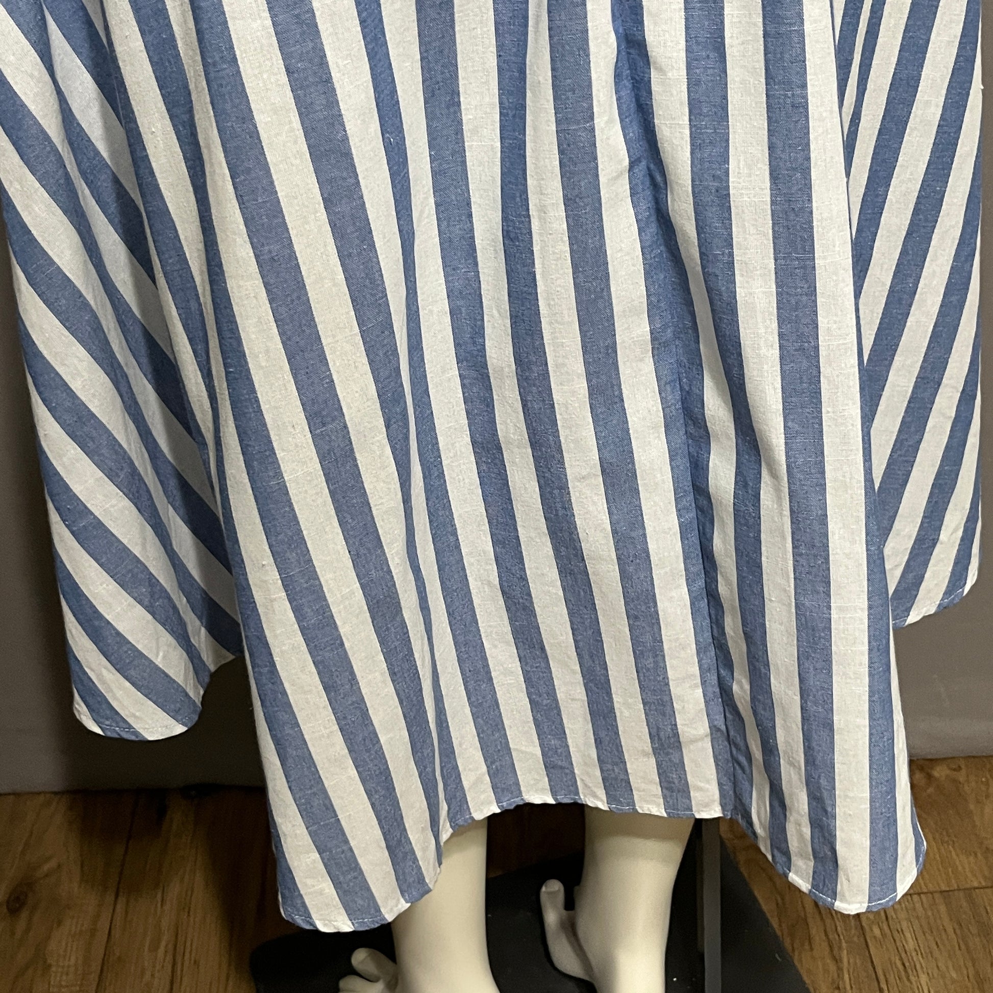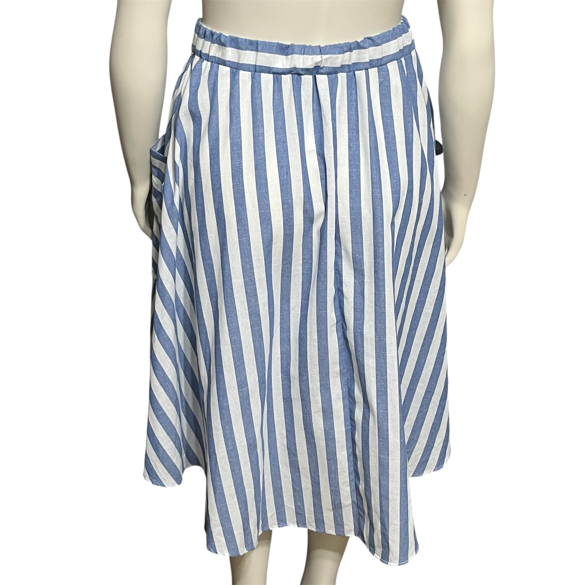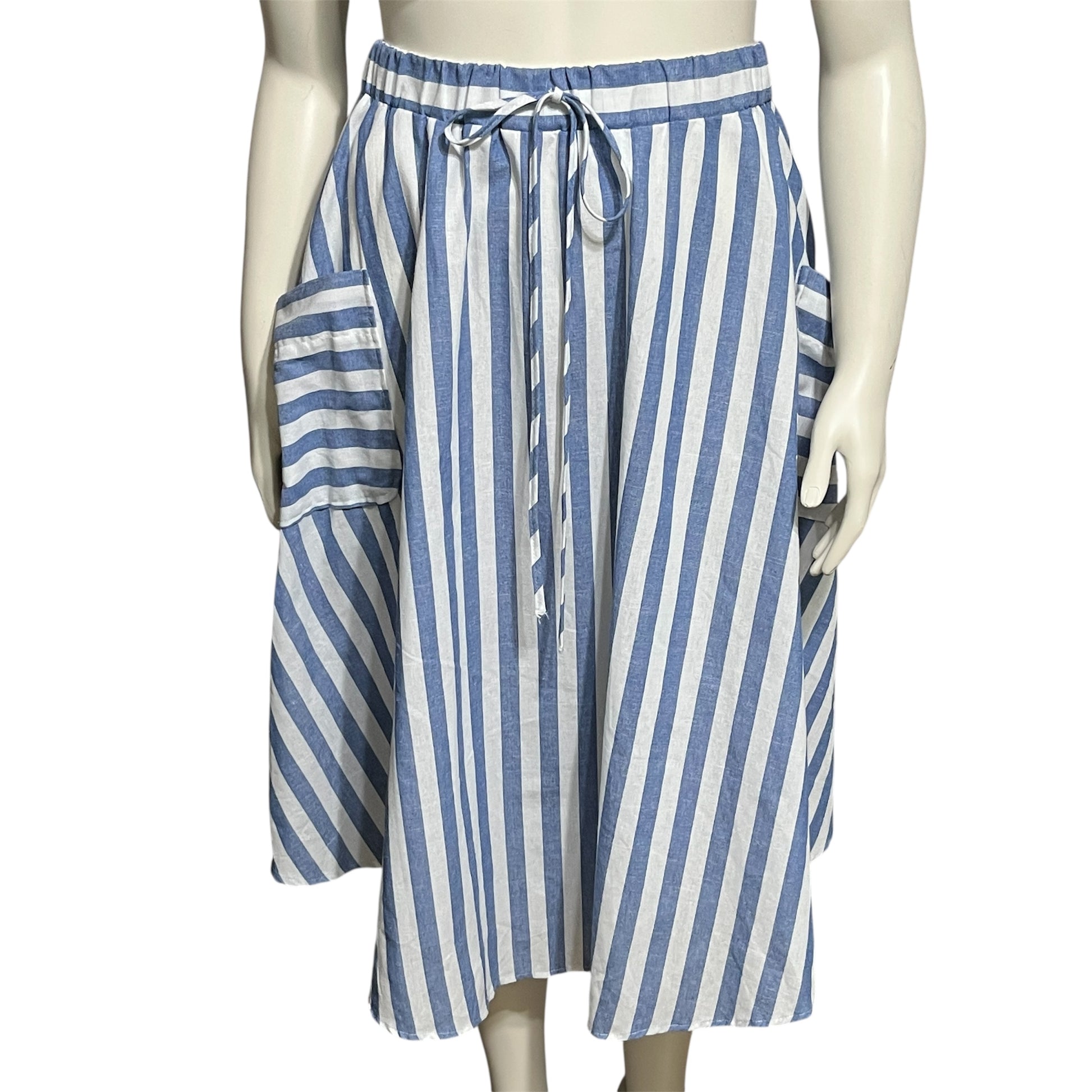 Stylish blue and white striped skirt perfect for any occasion. Features a comfortable fit with a drawstring waist and convenient pockets.