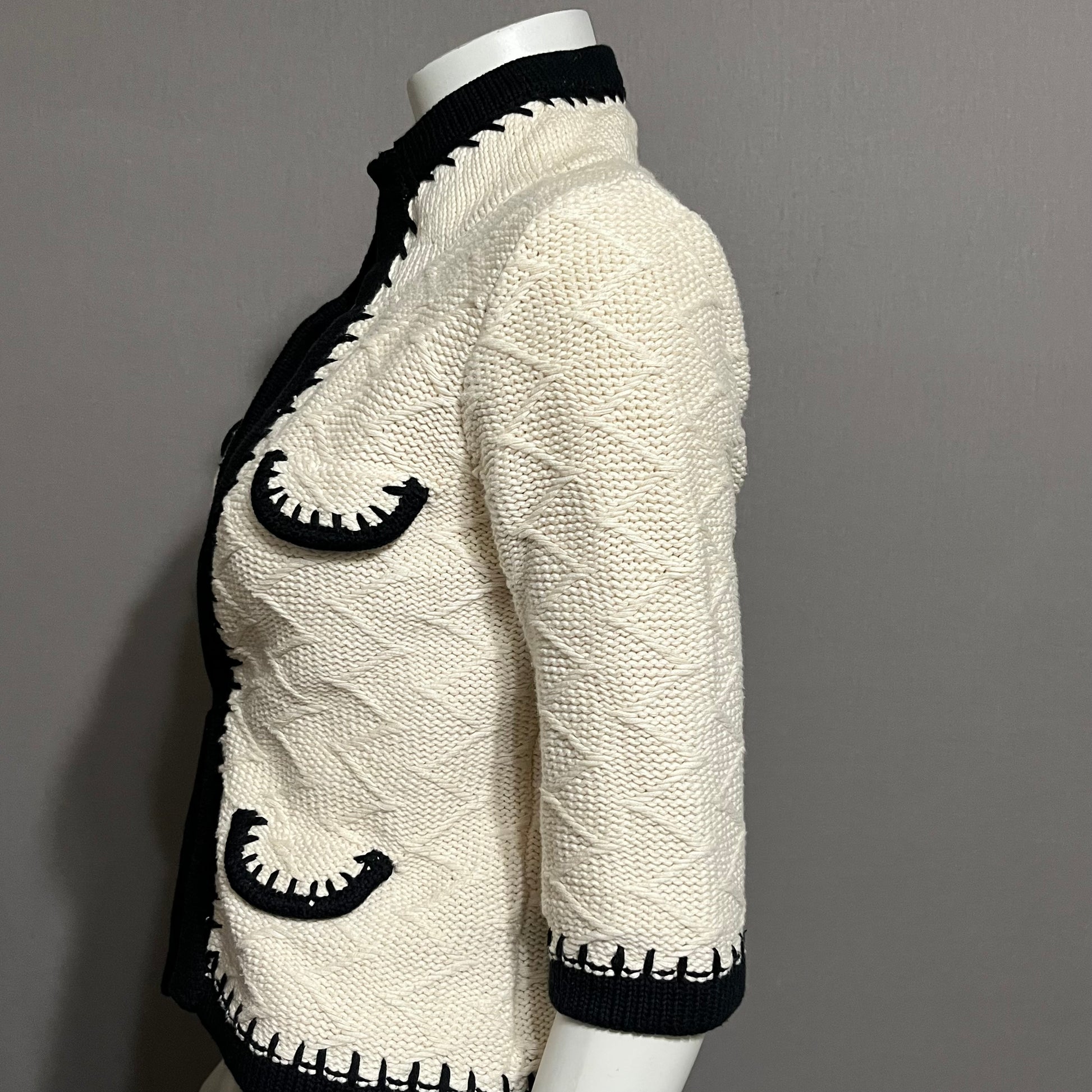Cabi Textured Cream & Navy Sweater Sz-Small