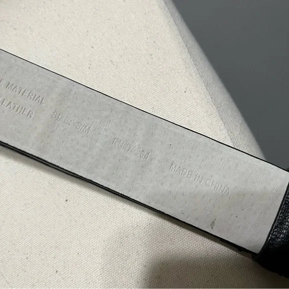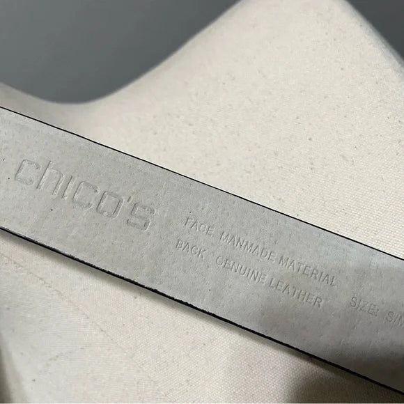 Chico’s Black Leather Adjustable Belt With Circle Metal Buckle Sm/Med