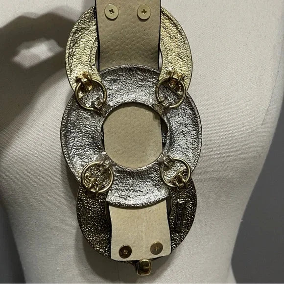 Chicos Black Leather Triple Ring Slouch Adjustable Belt Sz-Small/Medium