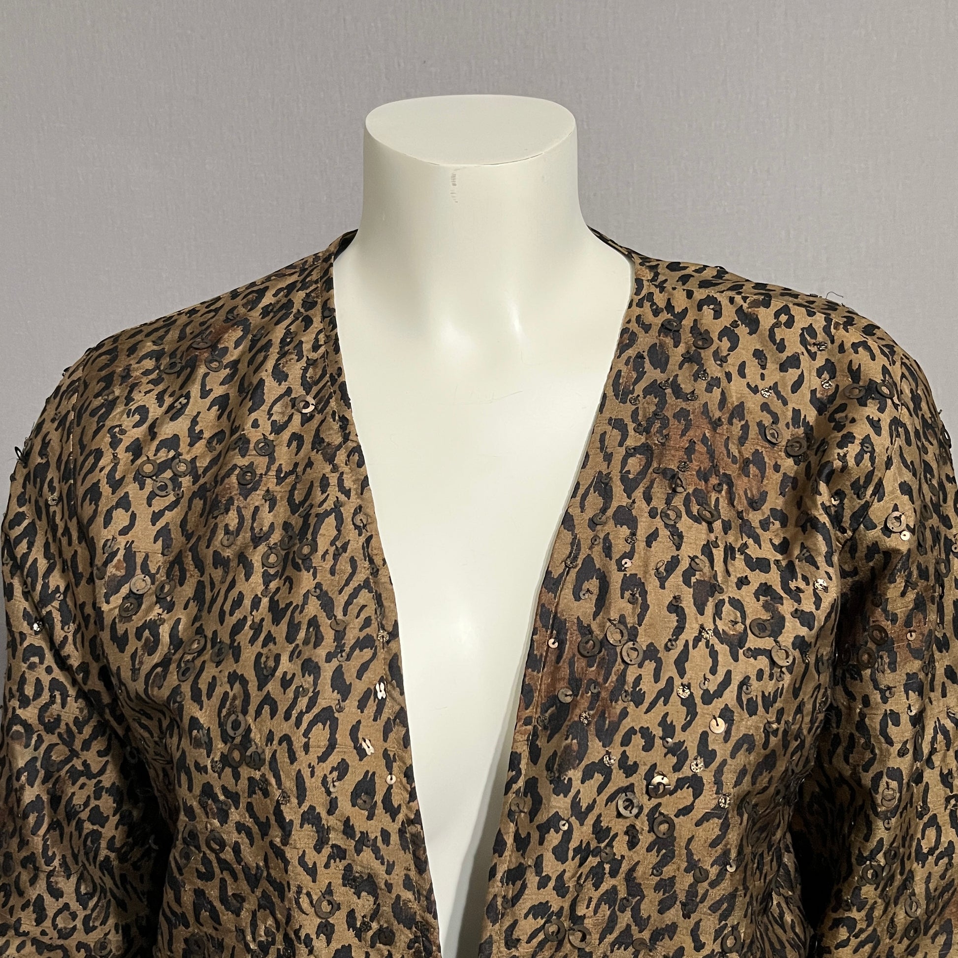Chicos Blazer Jacket Leopard 100% Silk Brown Sequins Blazer Sz-Large