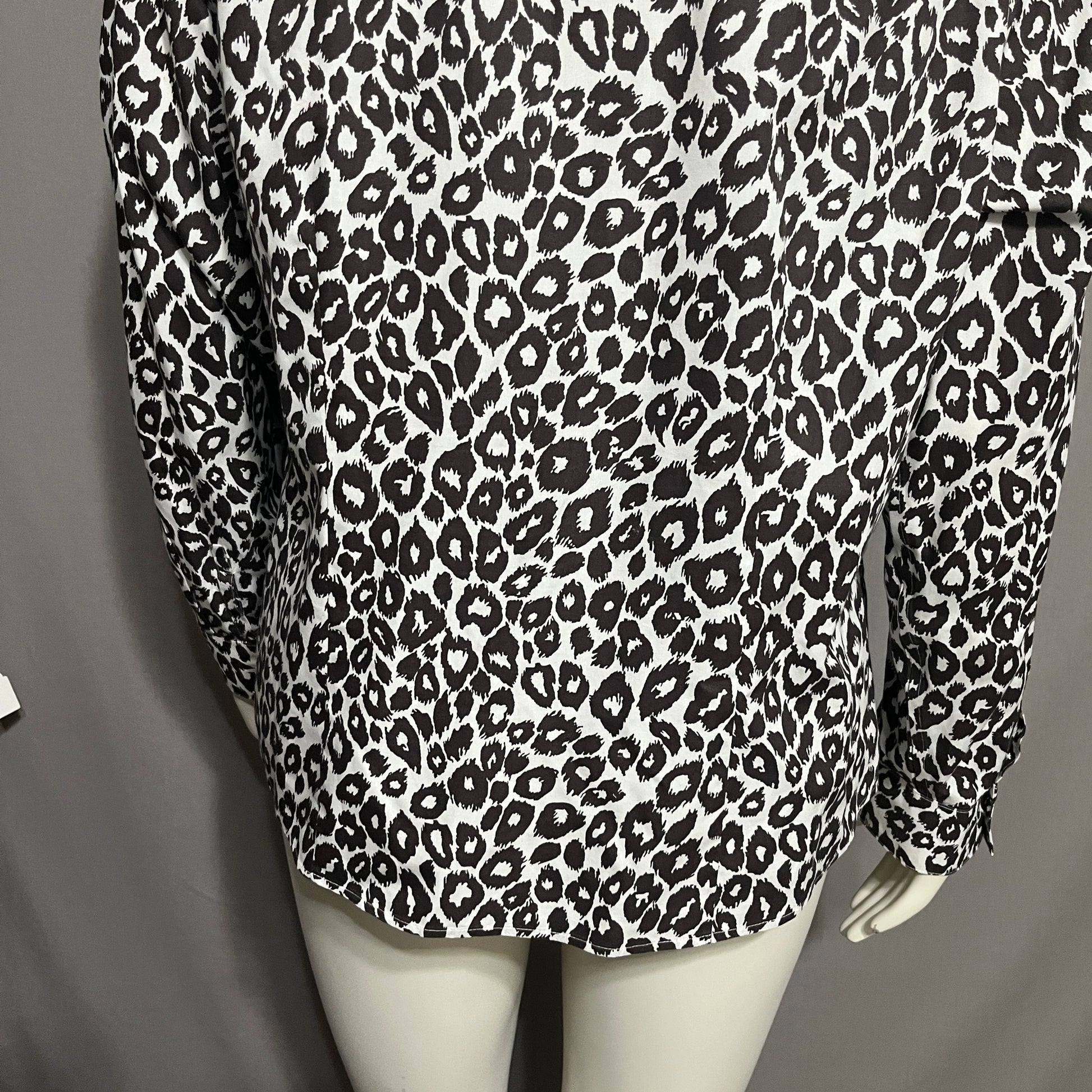 Chico's top with bold black and white animal pattern. Eye-catching and versatile.
