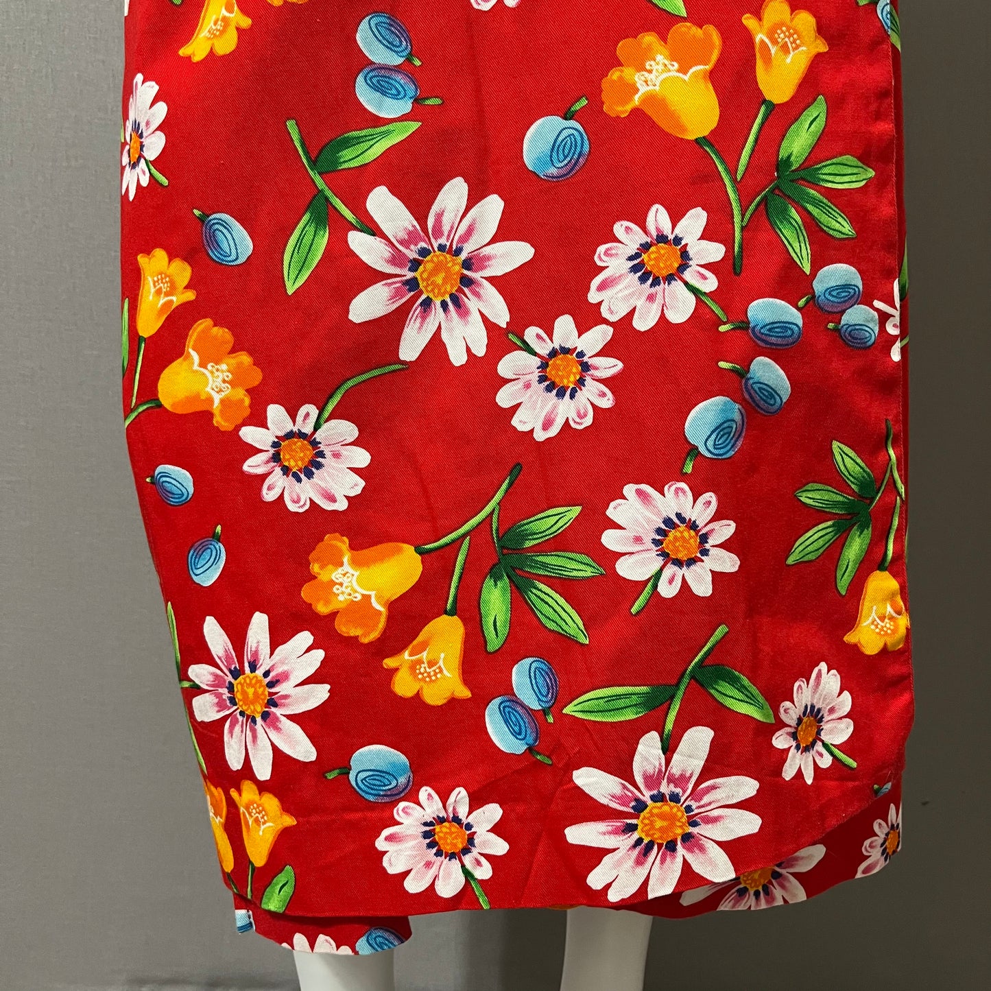 Vintage Floral Red Wrap Maxi Cotton Skirt Sz-Xtra Large