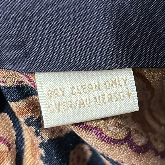 Details: Dana Buchman Brown Paisley Silk Blazer Top, with Button for added detail. Gently used condition, please see photos for flaws! Please look through all photos for any flaws to verify the condition. Major flaws will be disclosed.