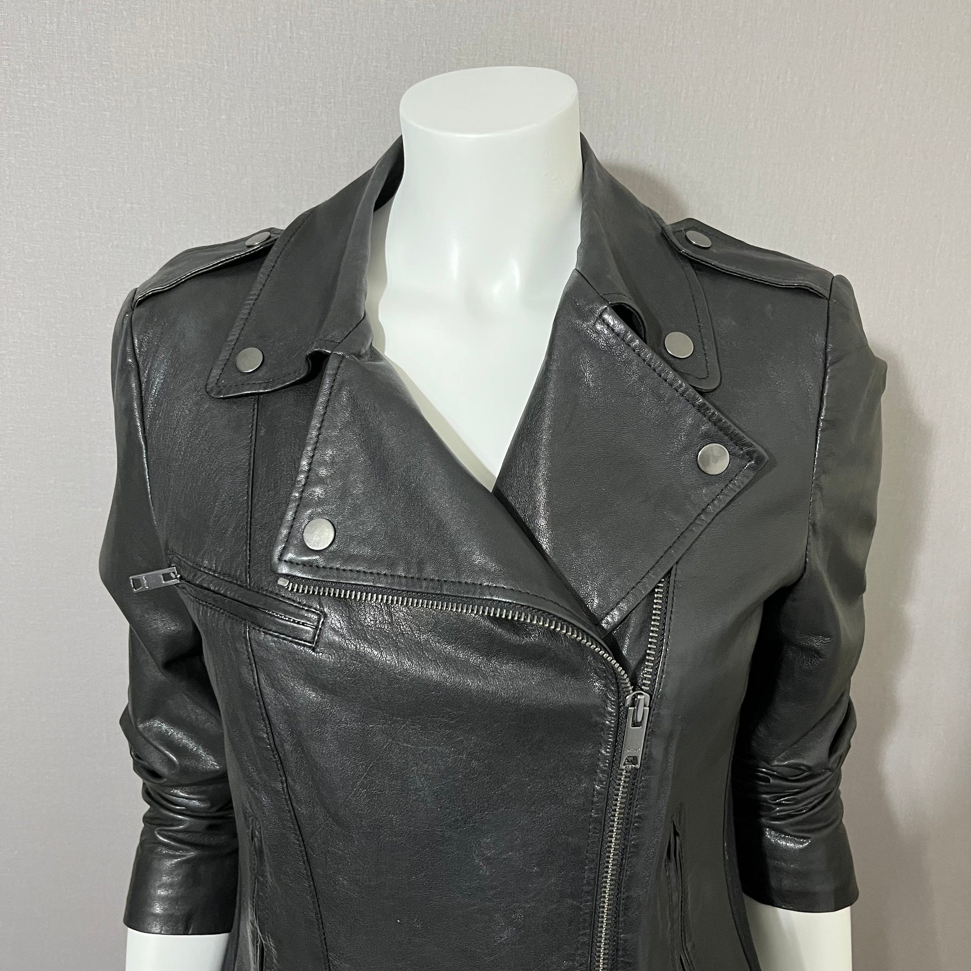 Details: DKNY Lamb Skin Leathe Moto Jacket, With Pockets and a asymmetrical zipper for added detail. Mixed media jacket!