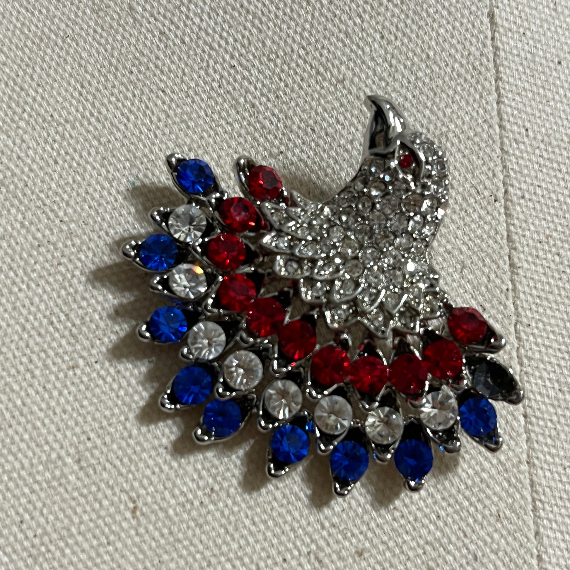 Eagle Patriotic Silver, Red, and Blue Crystal Brooch