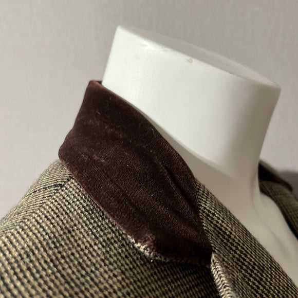 Details: Evan Picone brown tan suit set, With velvet collar, button and flap pockets for a added detail. Gently used condition, please see photos for flaws! Please look through all photos for any flaws to verify the condition. Major flaws will be disclosed.