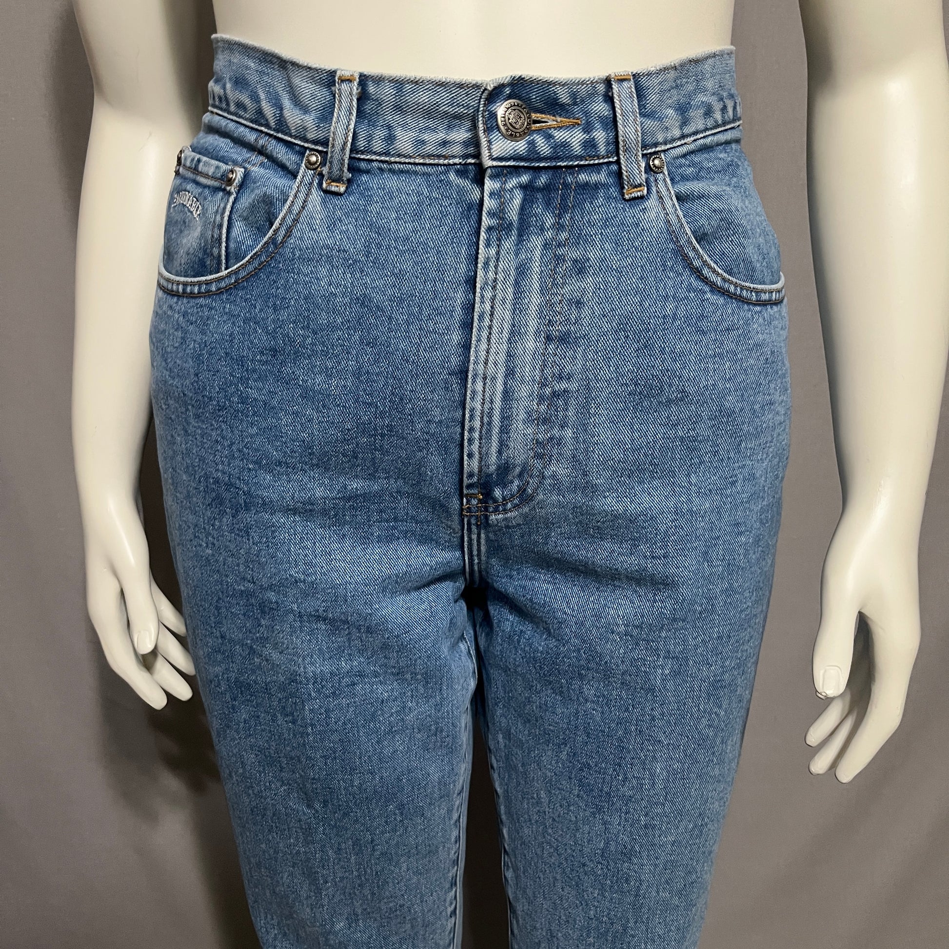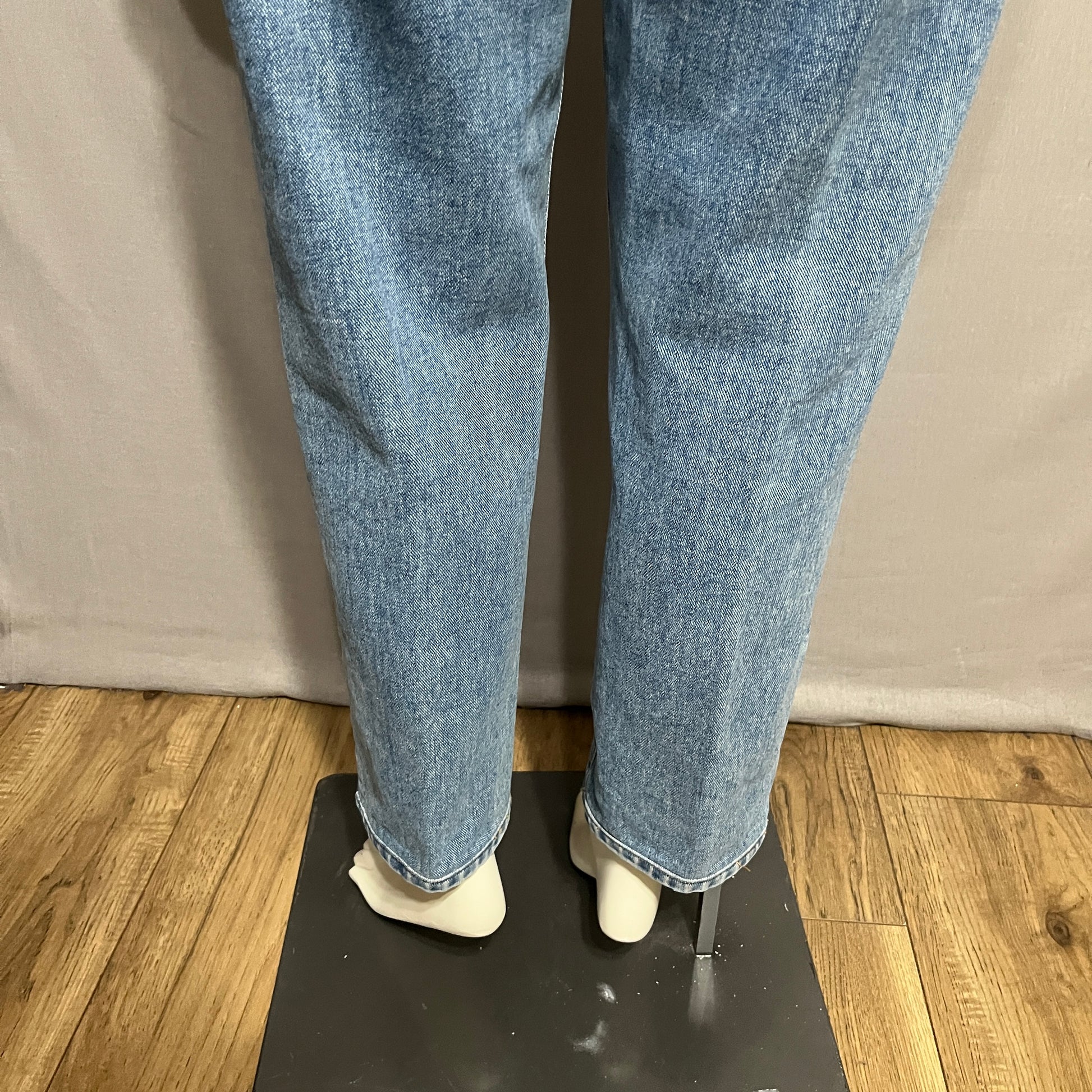 Faconnable Light Blue Denim with Tan Patch Straight High Rise Jeans Sz-14