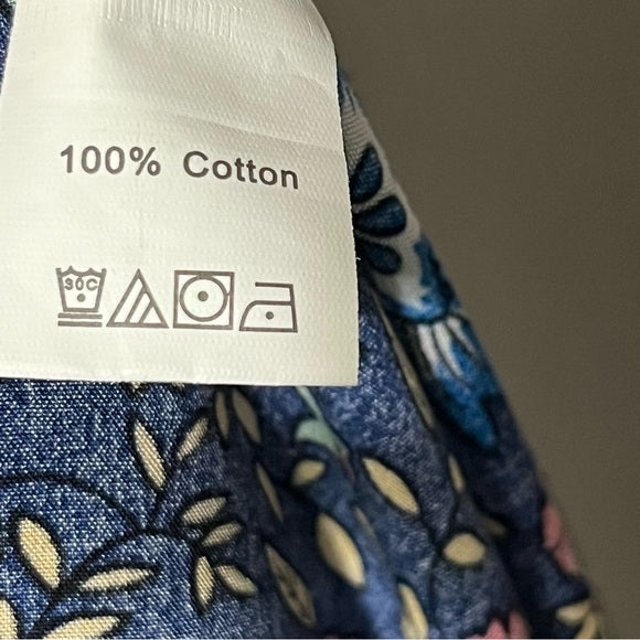 Floral V-Neck 100% Cotton Multicolored Maxi Wrap Dress Sz-Medium