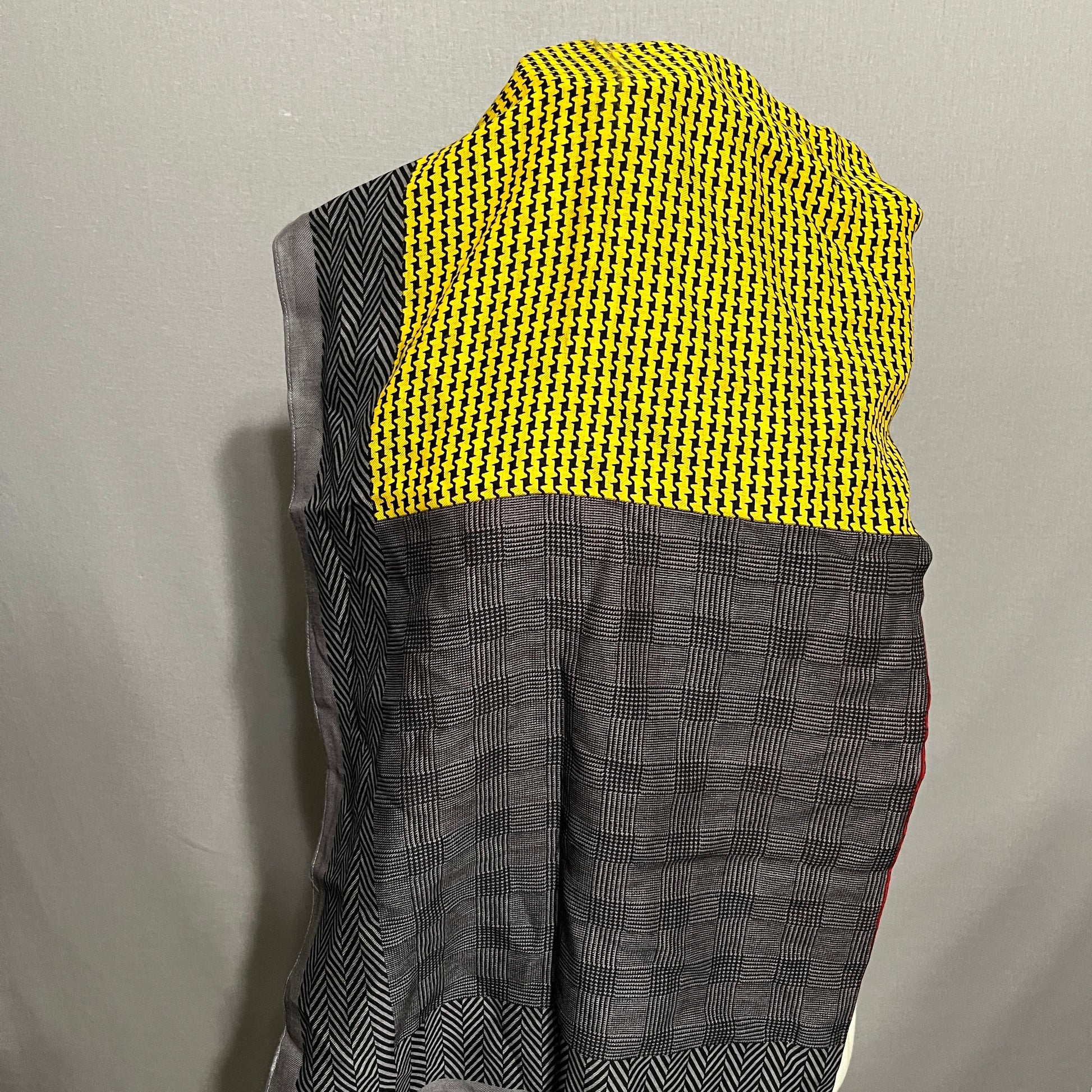 Geoffrey Beene Gray and Yellow Unisex Herringbone Wool Scarf