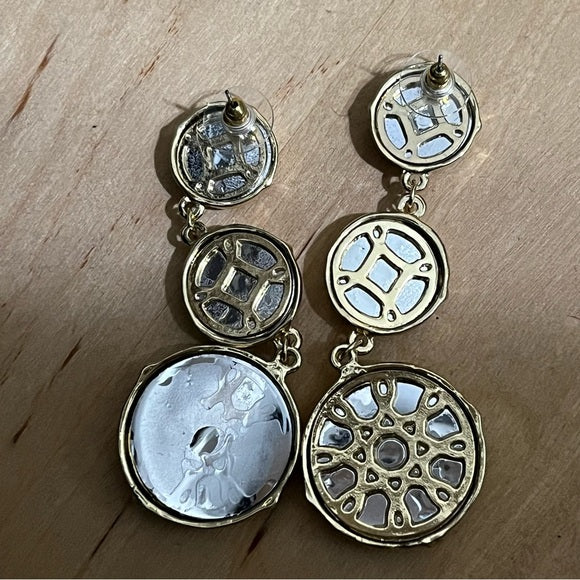 Details: Gold | Emerald 3 Tier Earring, Gently used condition, please see photos for flaws! Please look through all photos for any flaws to verify the condition. Major flaws will be disclosed.