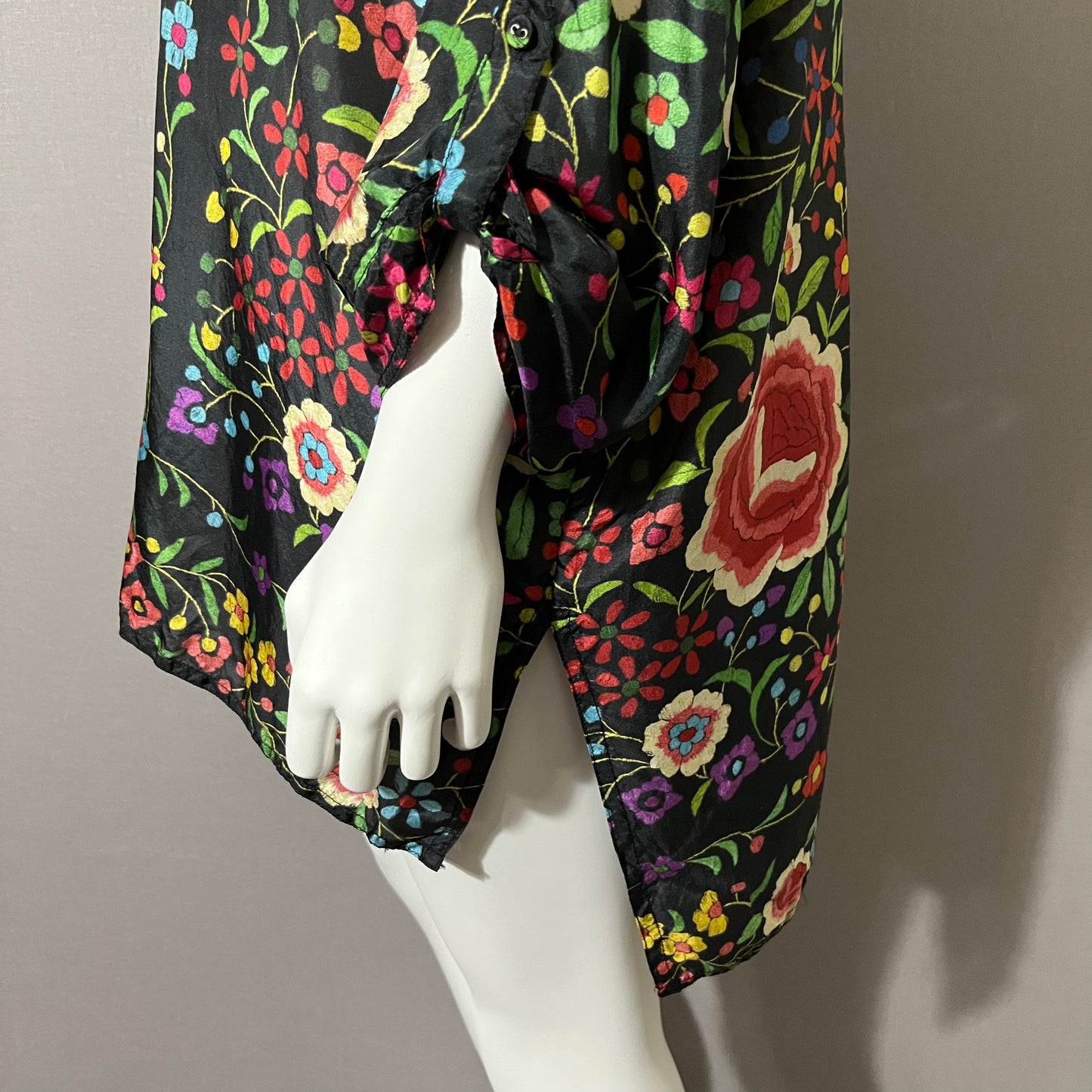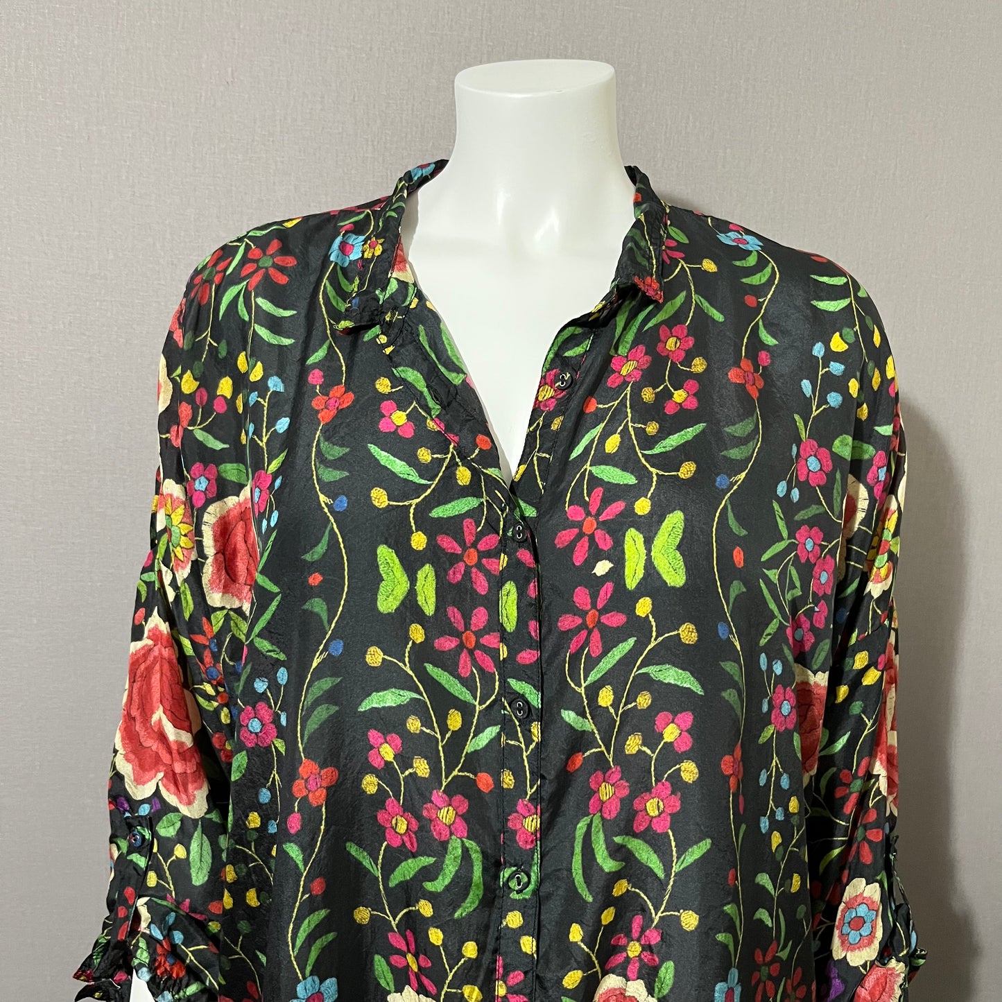 Johnny Was Black Silk Floral Button Front Blouse Sz-Large