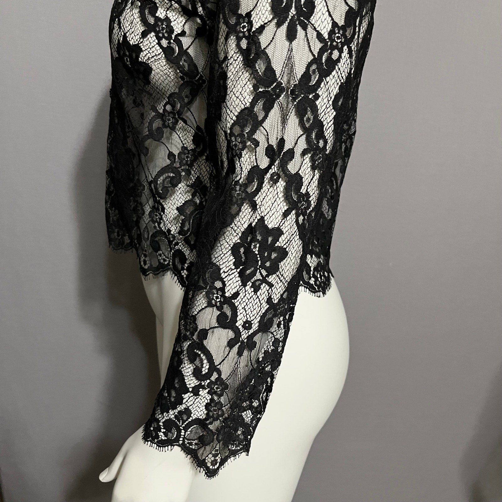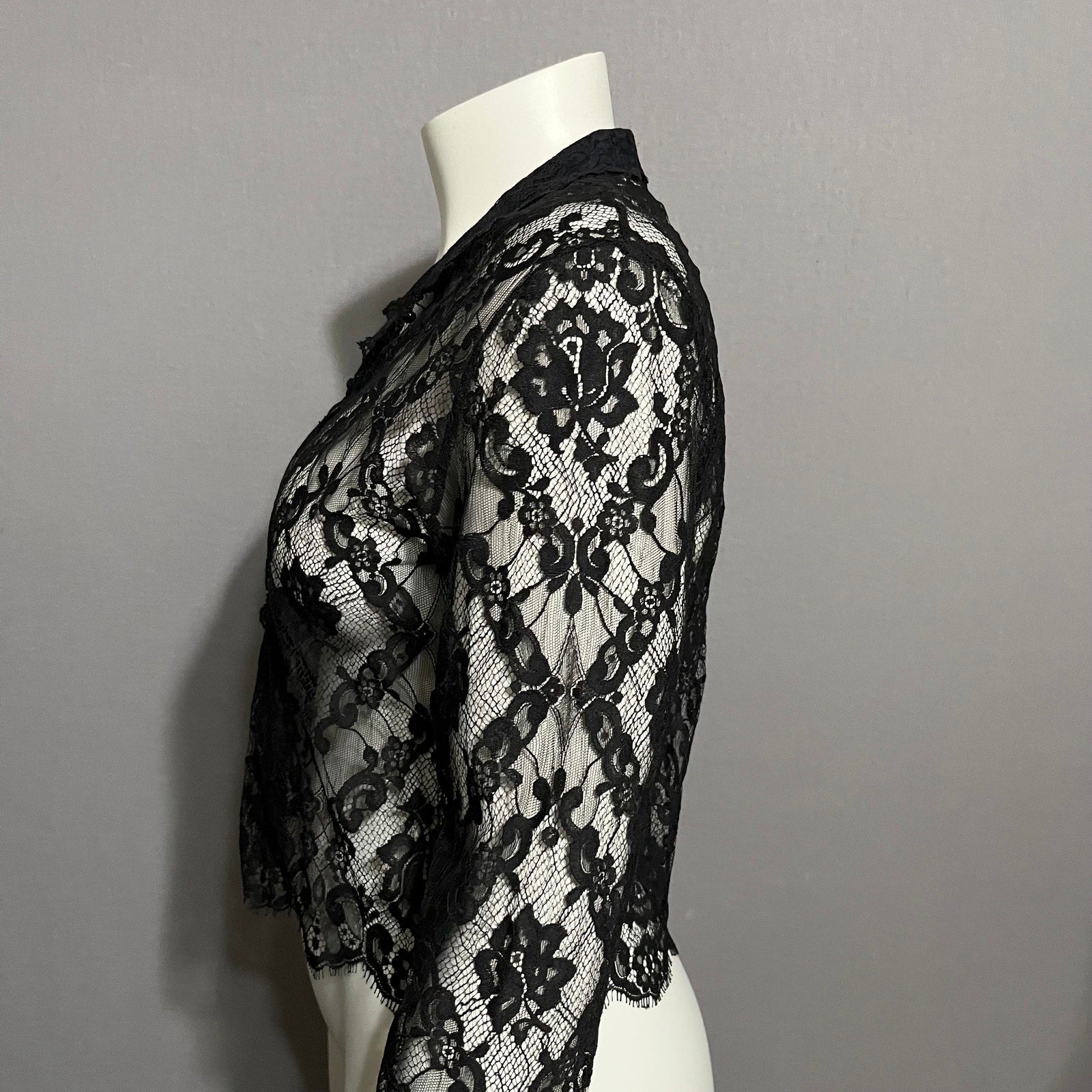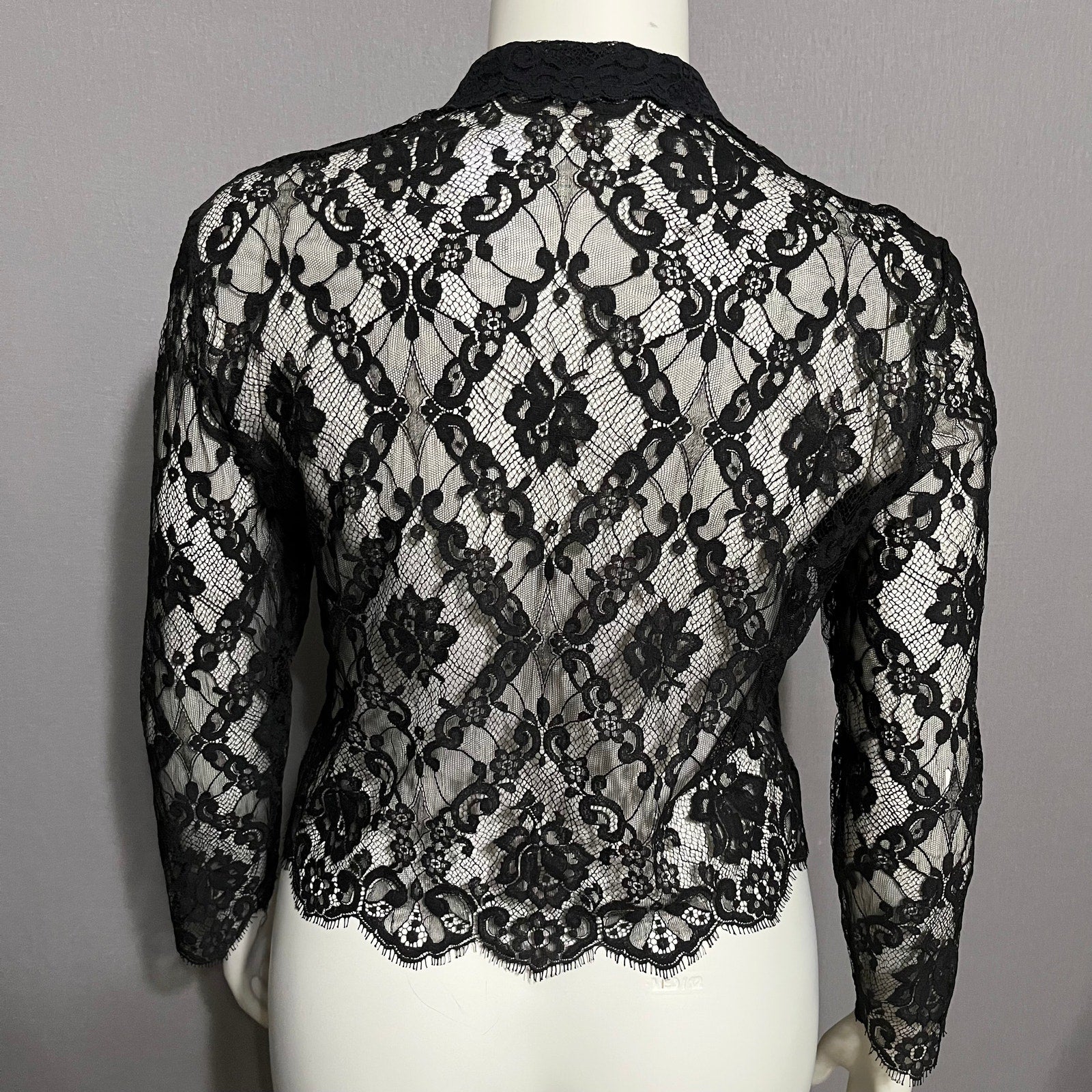Katherine Harestad Black Allover Lace Collared Blouse Sz-Medium/Large