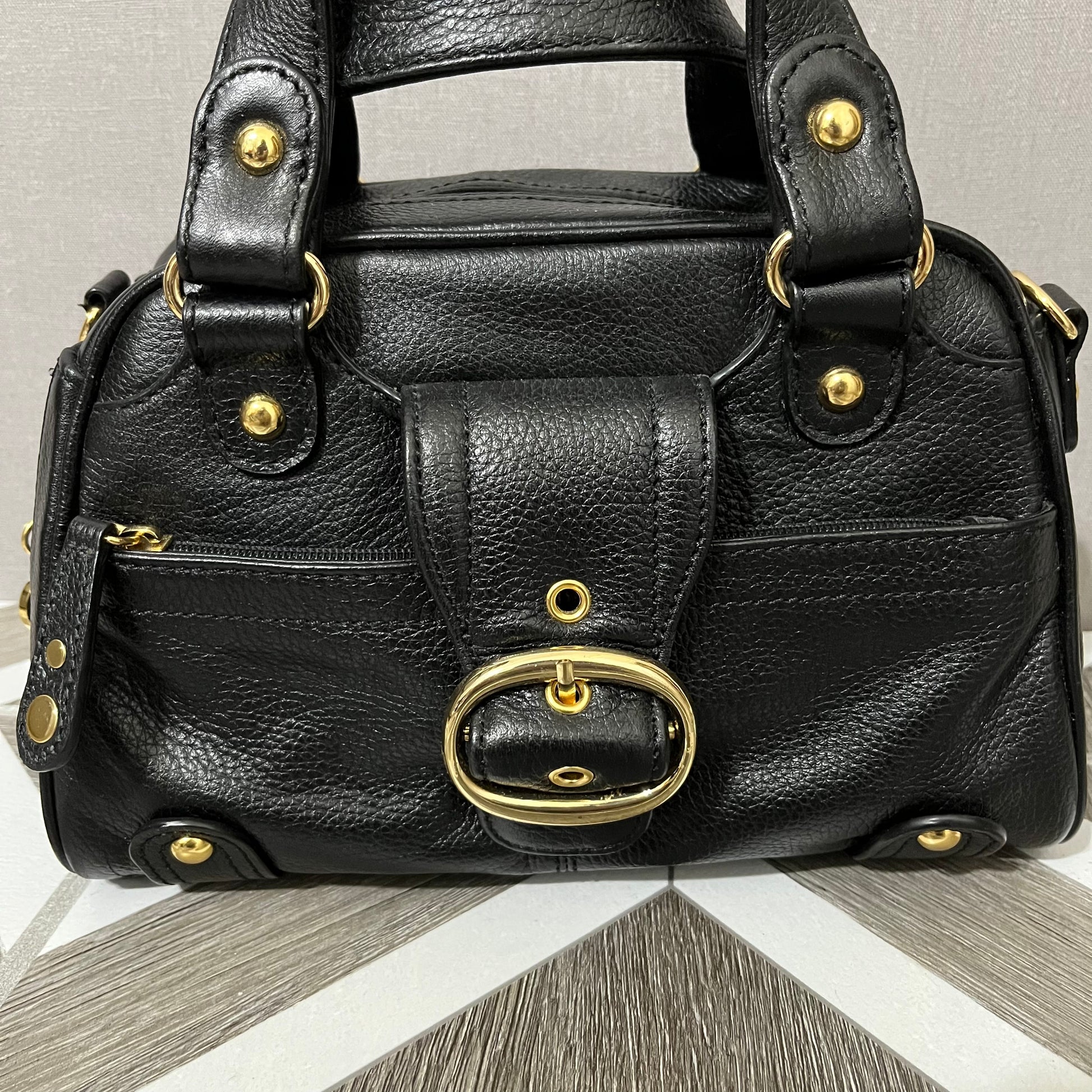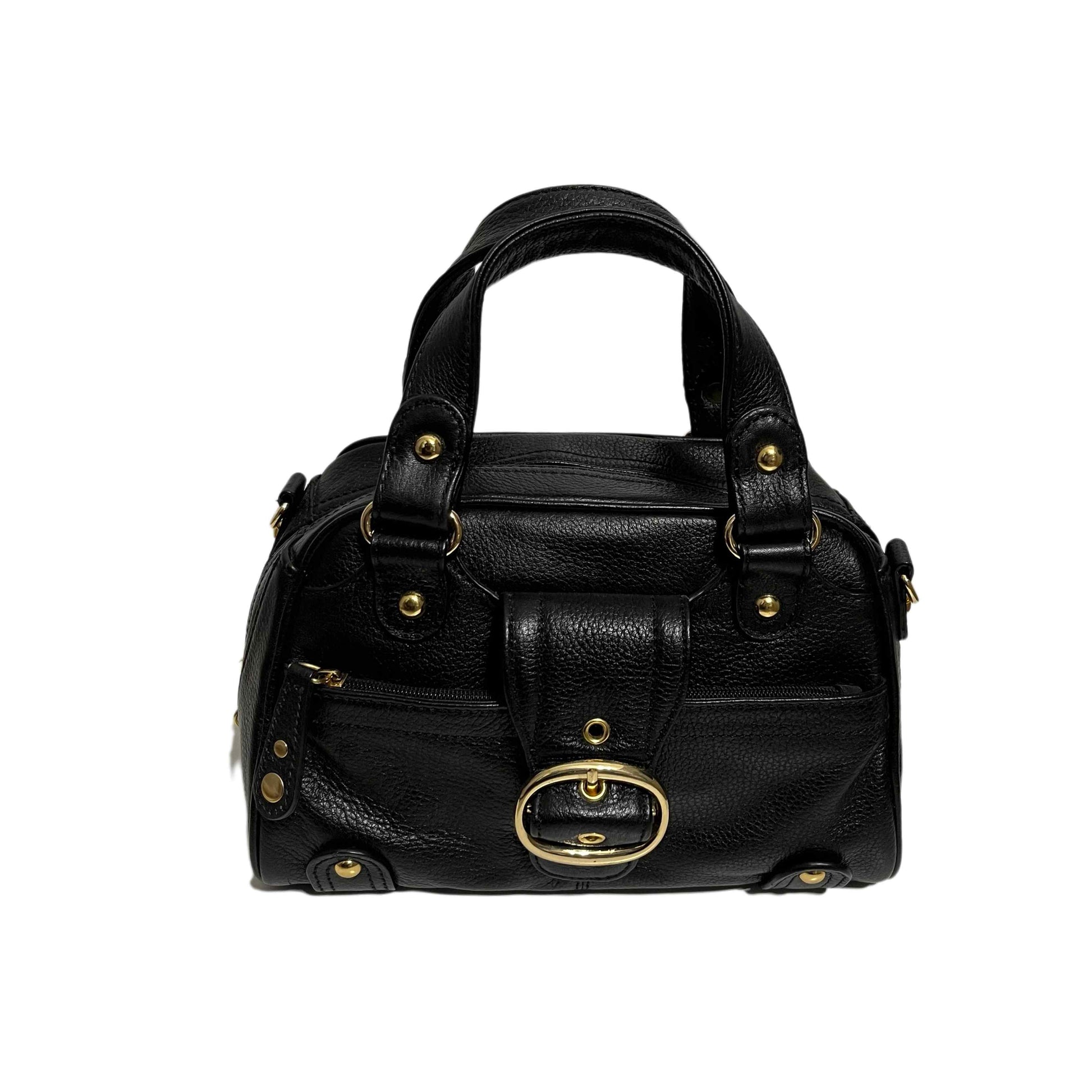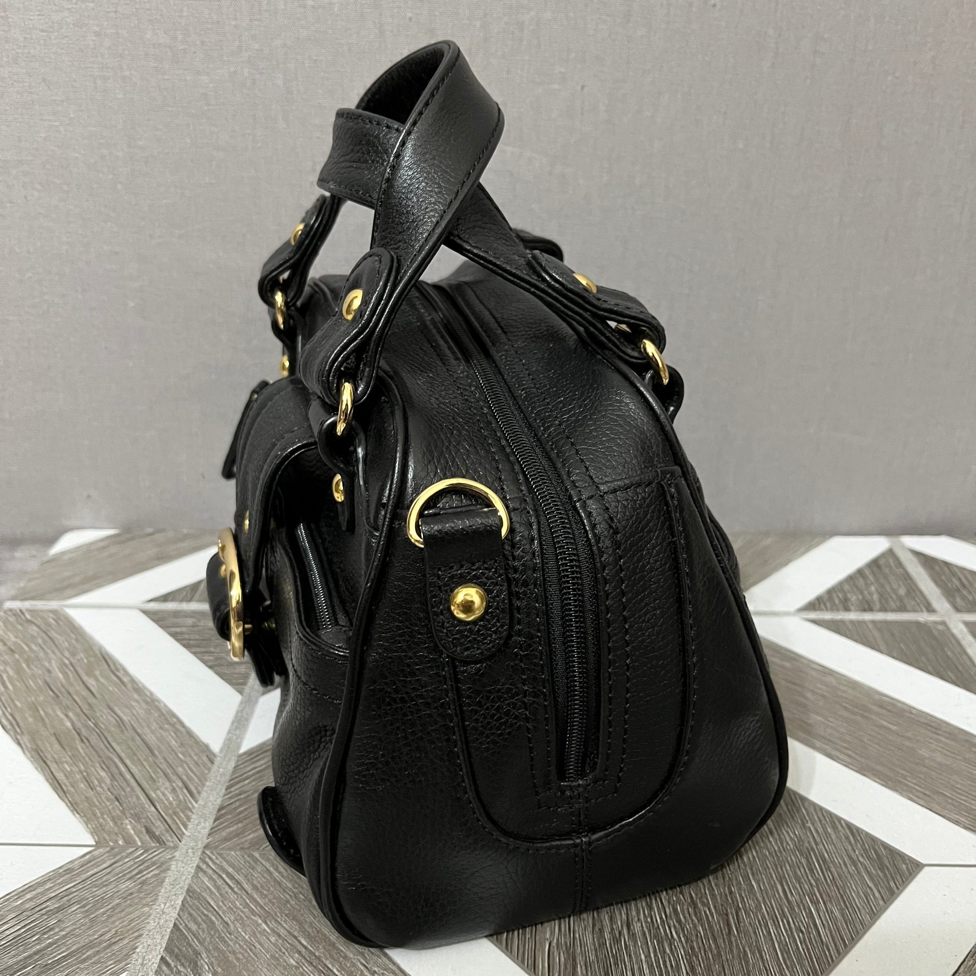 Details: Max New York Black Mini Leather Hand Bag, With zipper & snap added detail. Gently used condition, please see photos for flaws! Please look through all photos for any flaws to verify the condition. Major flaws will be disclosed.