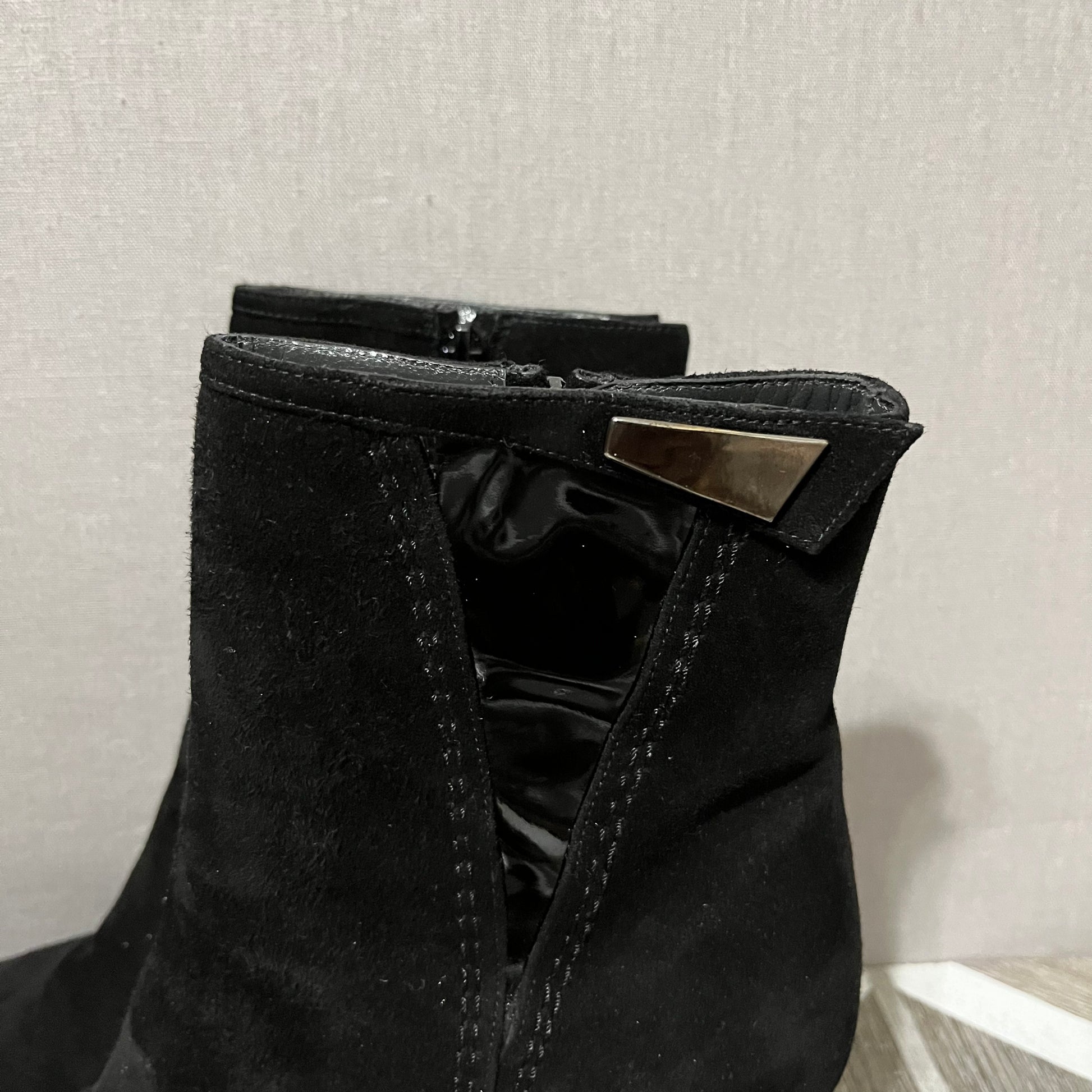 Details: Stuart Weitzman black suede leather gore tex boot, Gently used condition, please see photos for flaws! Please look through all photos for any flaws to verify the condition. Major flaws will be disclosed.