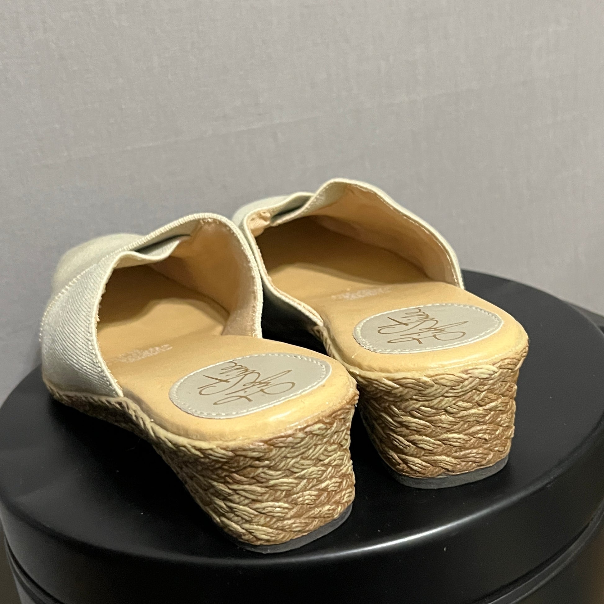 Elegant cream mules with a comfortable wedge. Ideal for casual wear.