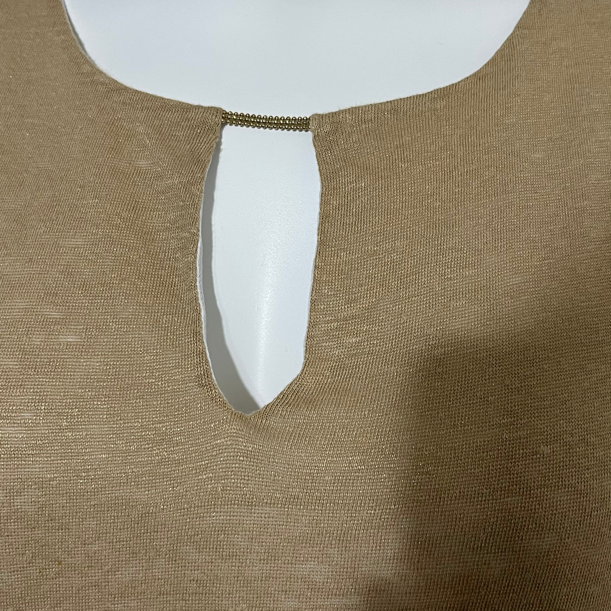 Details: Ecru linen tank top with a gold shimmer, Great career tank to wear under a blazer. Gently used condition, please see photos for flaws! Please look through all photos for any flaws to verify the condition. Major flaws will be disclosed.
