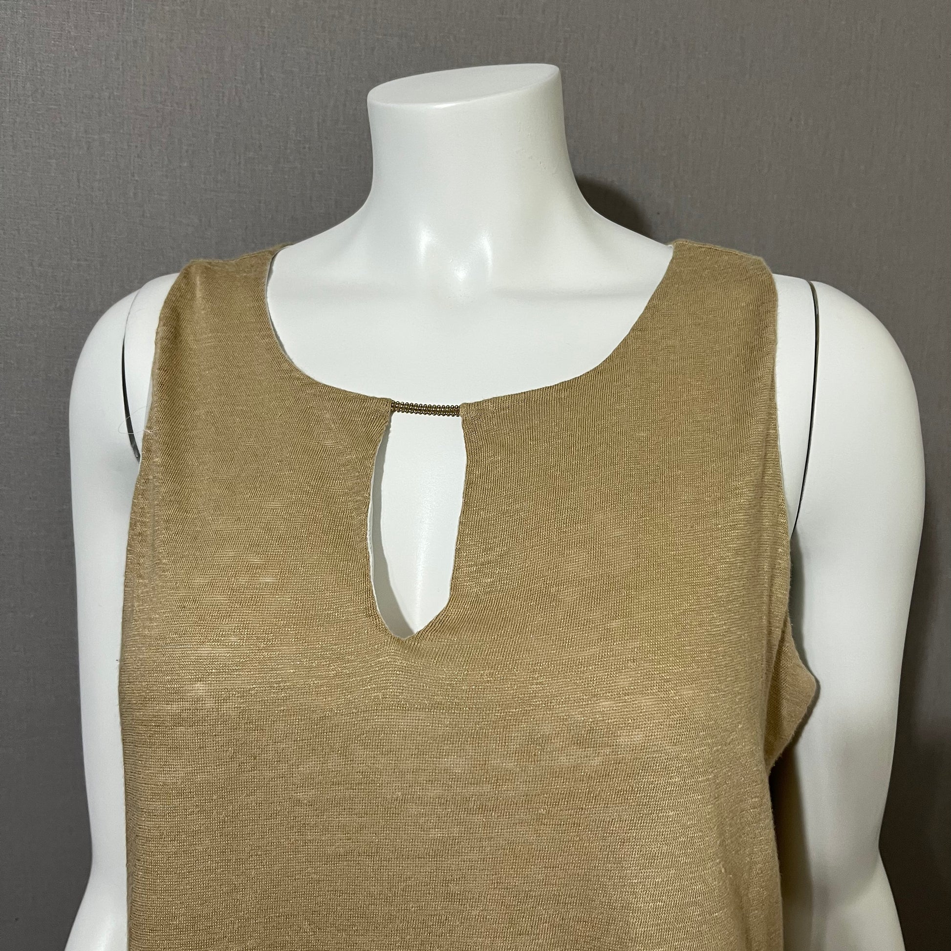 Linen Ecru Tan Shimmer Linen Mixed Media Sleeveless Shell Tank Top Sz-Large