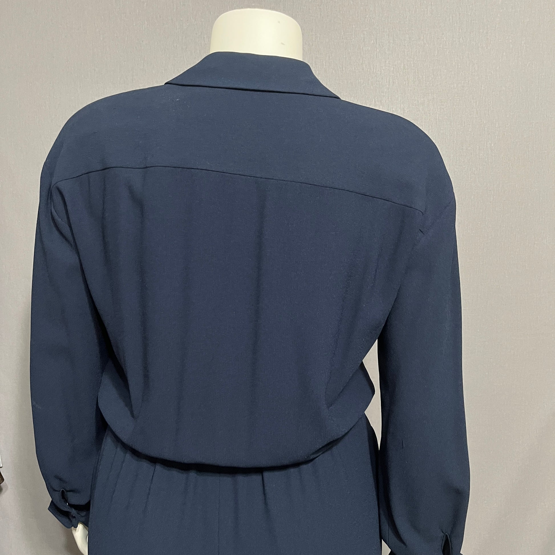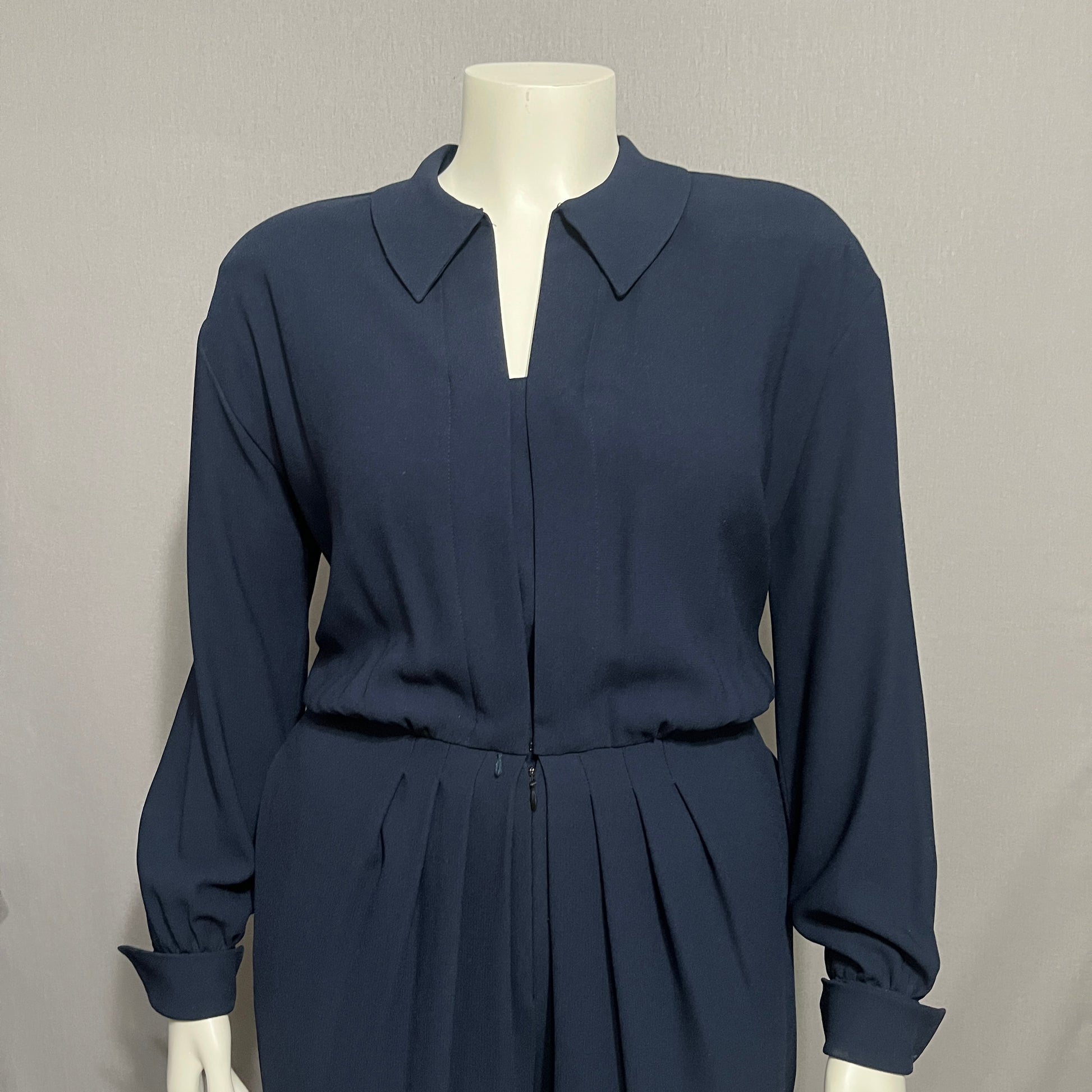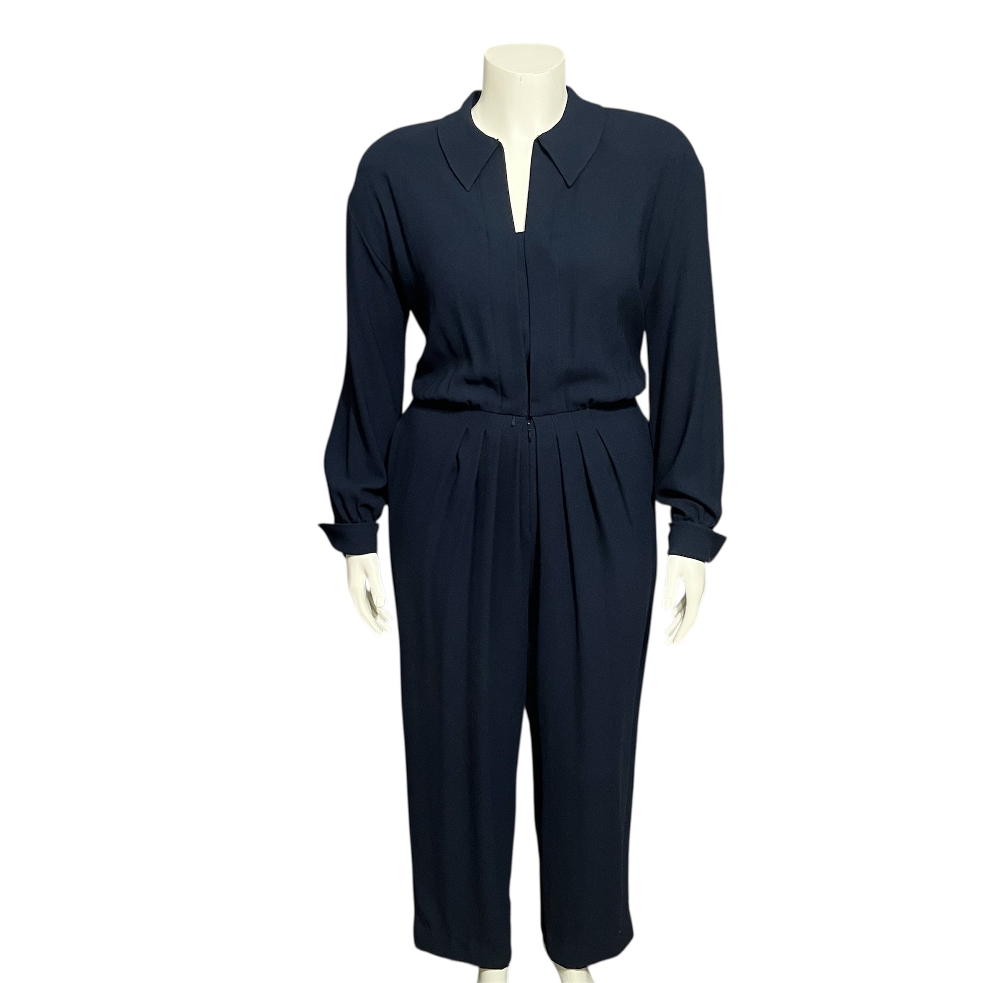 Liz Claiborne Vintage Navy Collard Long Sleeve Jumpsuit Sz-10