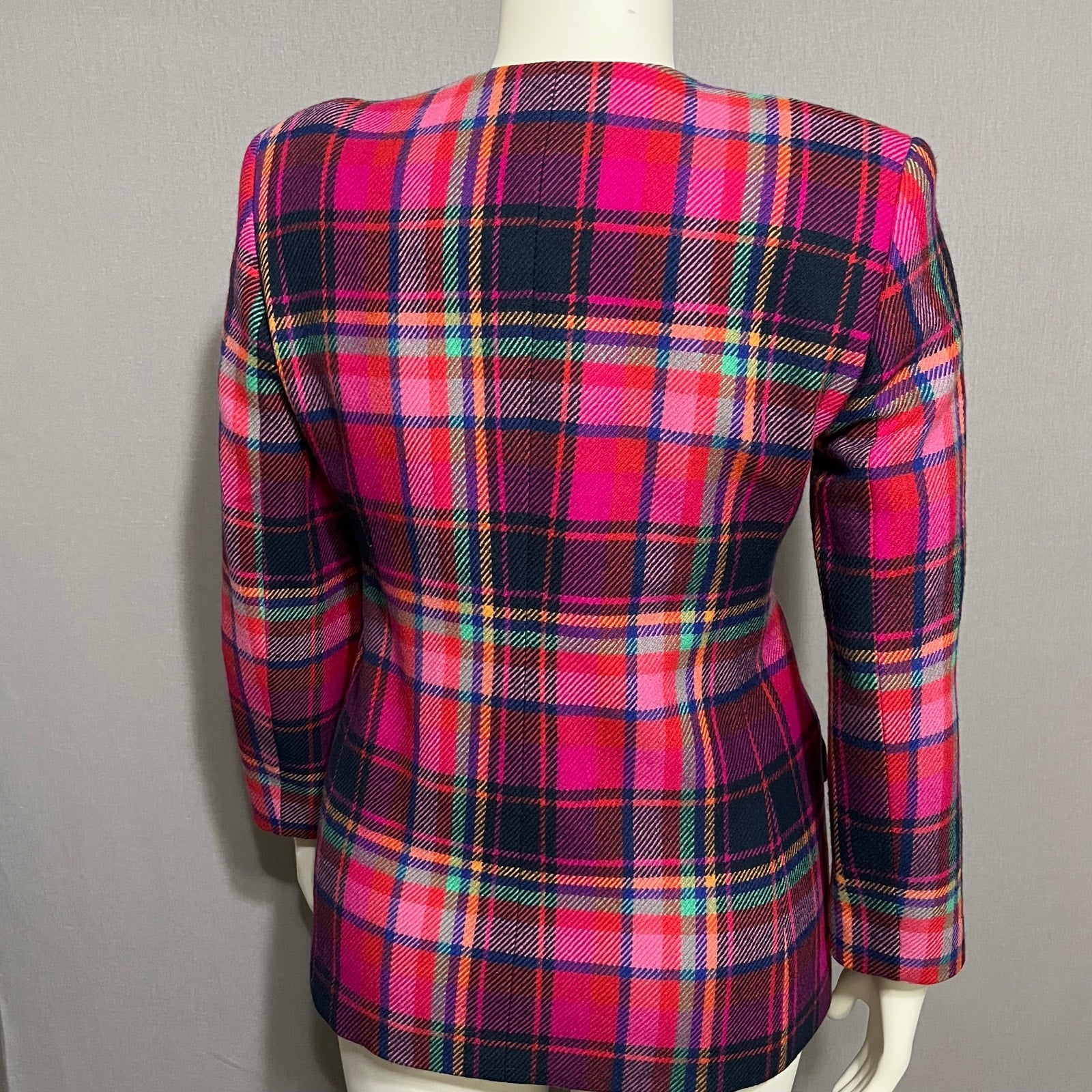 Lord & Taylor Pink Fuchsia Plaid Print Fitted Blazer Sz-6P