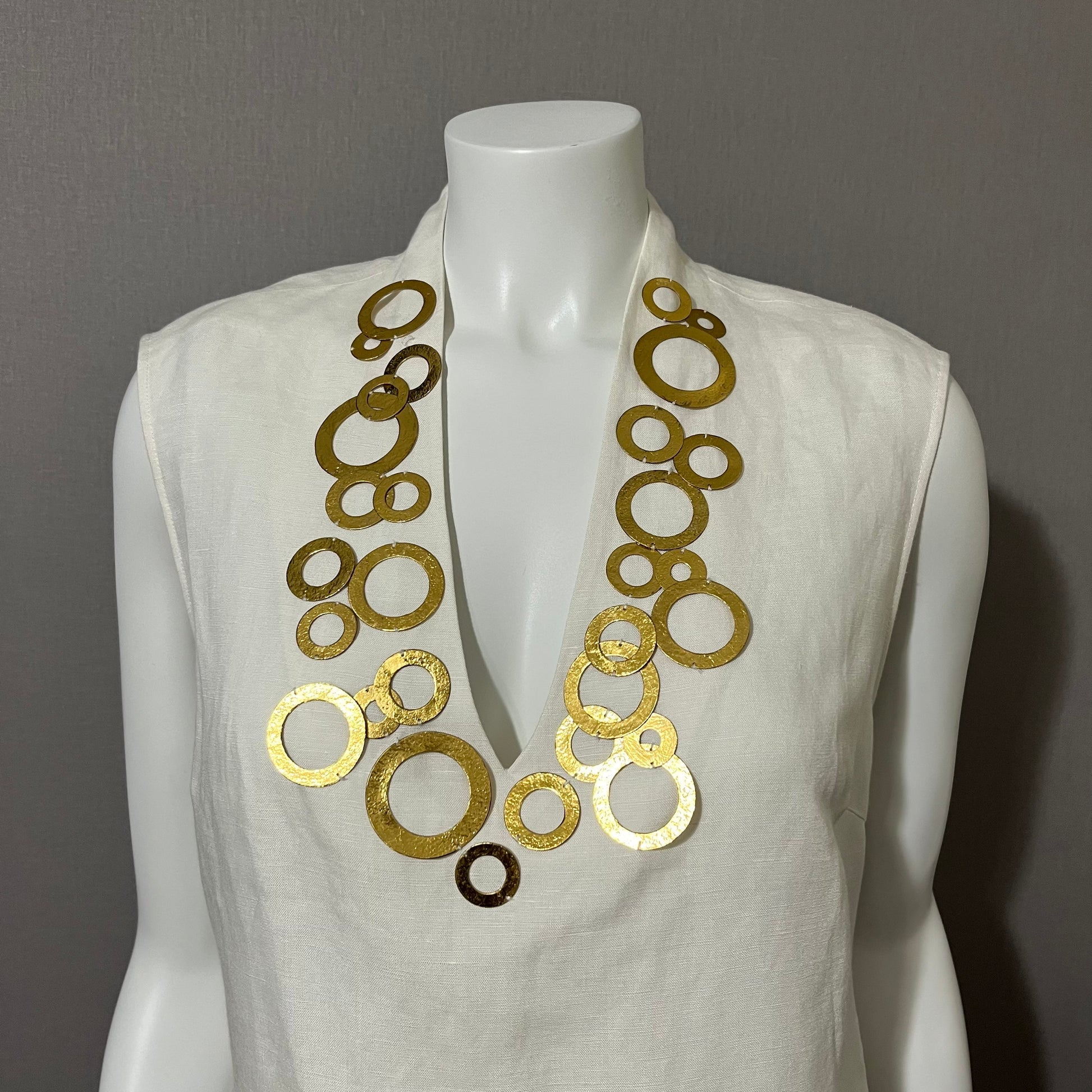 Details: Natorious White V-Neck Top, with v-neck metallic for added detail. Gently used condition, please see photos for flaws! Please look through all photos for any flaws to verify the condition. Major flaws will be disclosed.