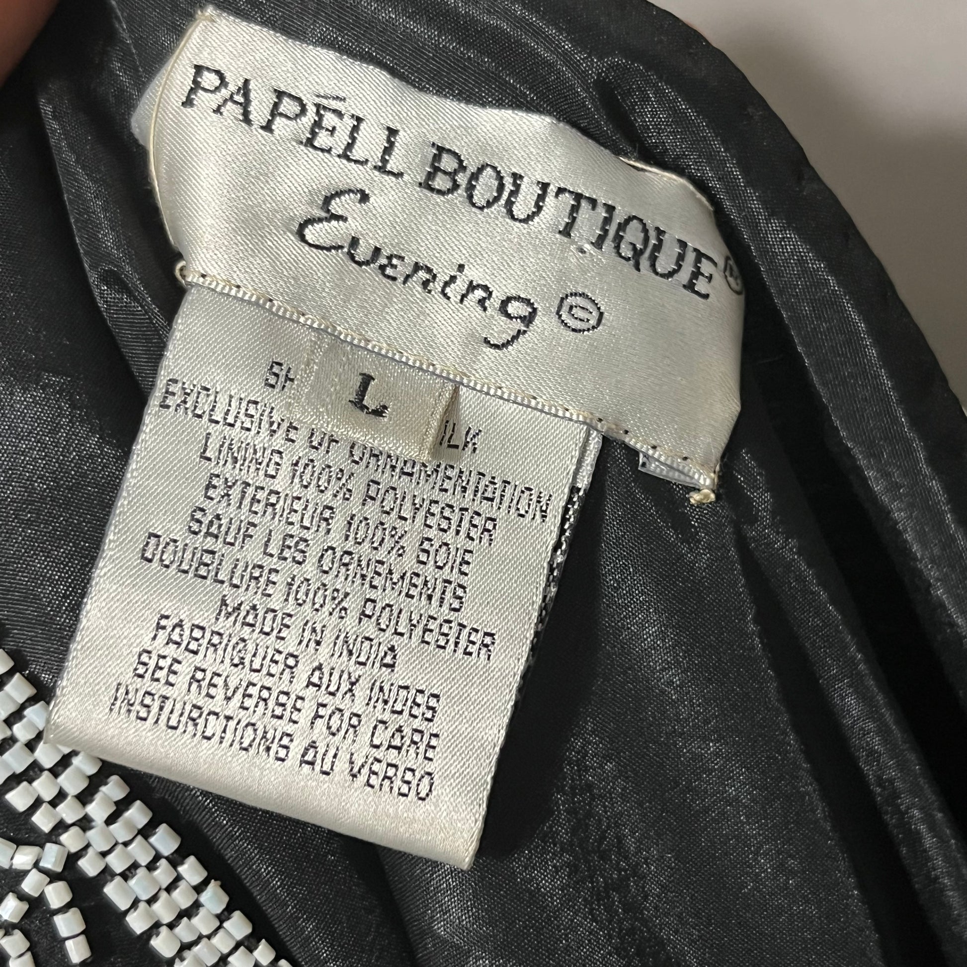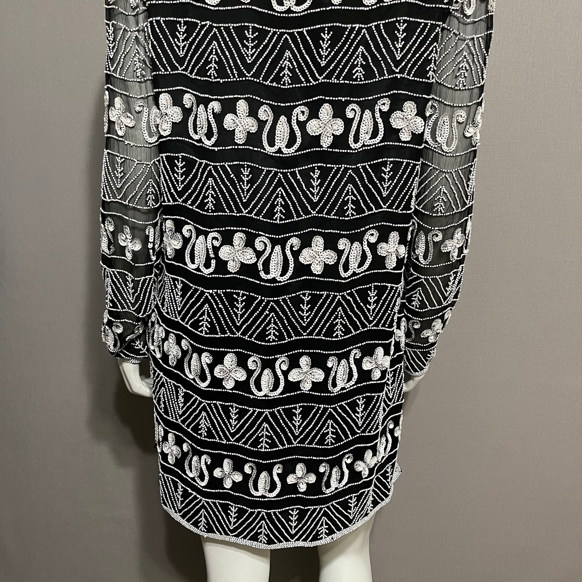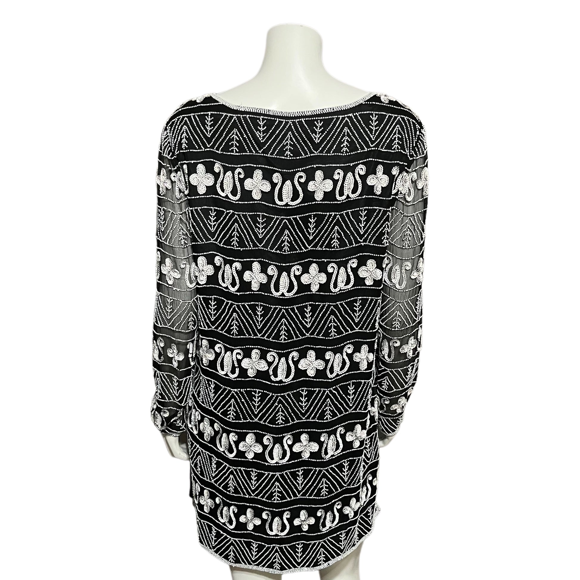 Papell Boutique 100% Silk Black With White Beaded Tunic Top Sz-Large