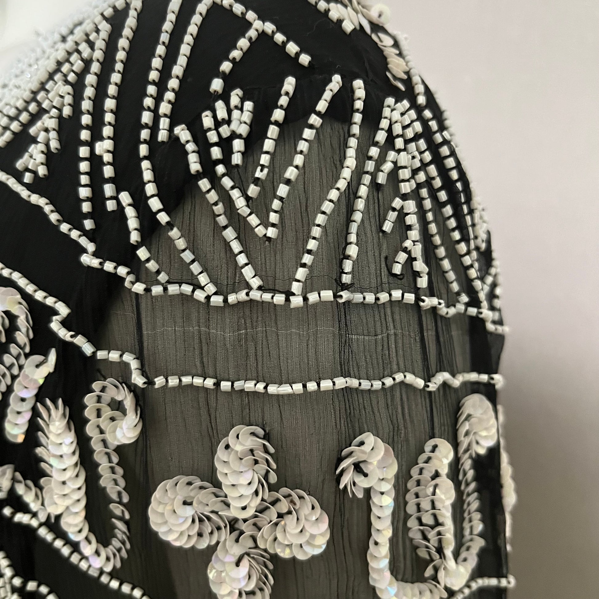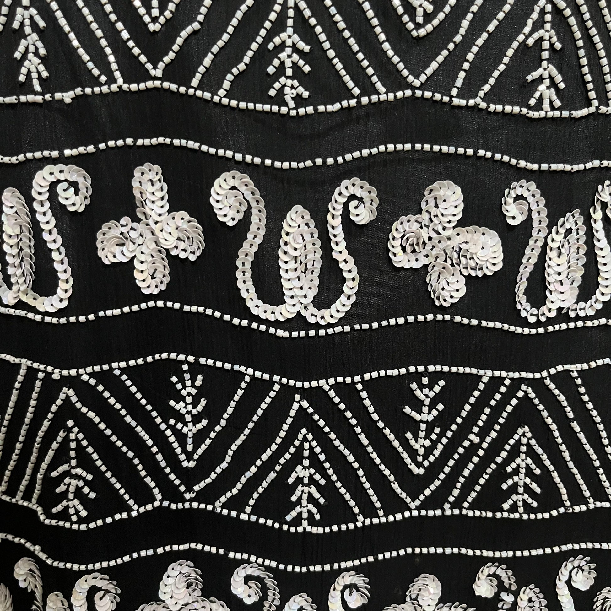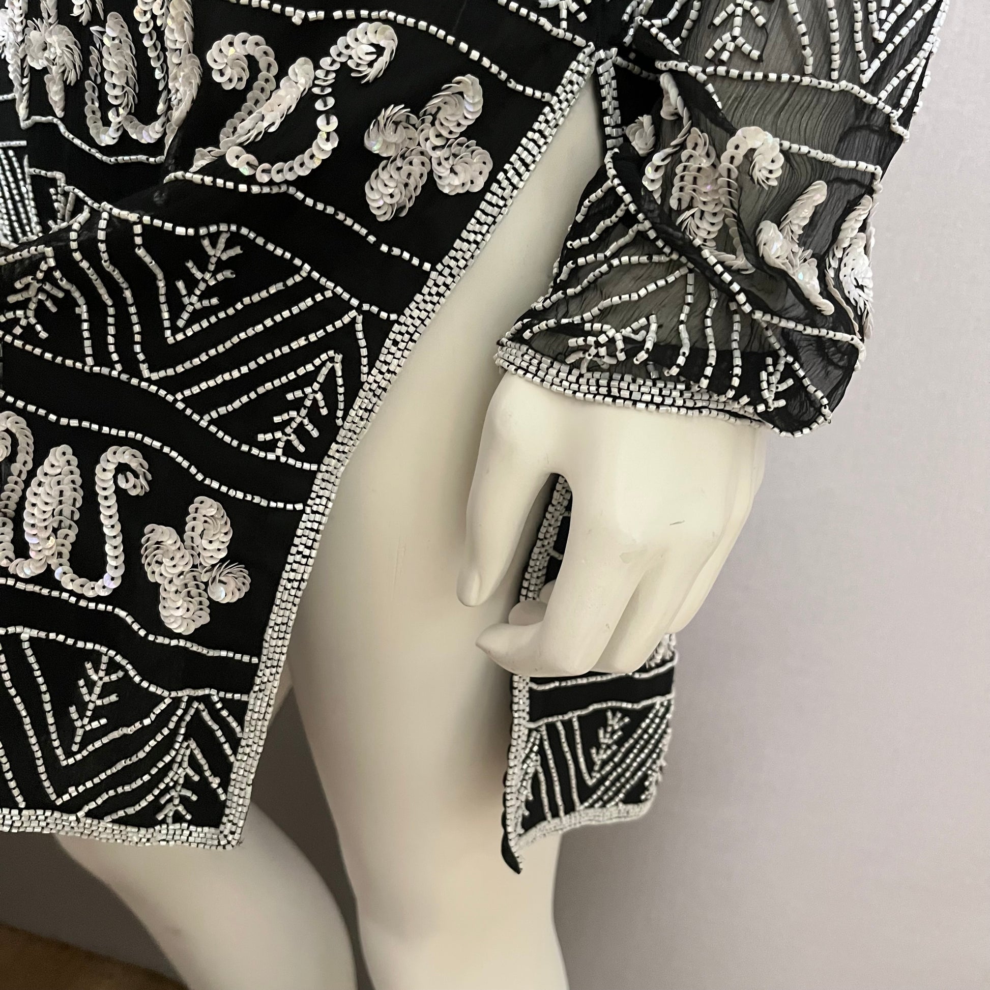 Papell Boutique 100% Silk Black With White Beaded Tunic Top Sz-Large