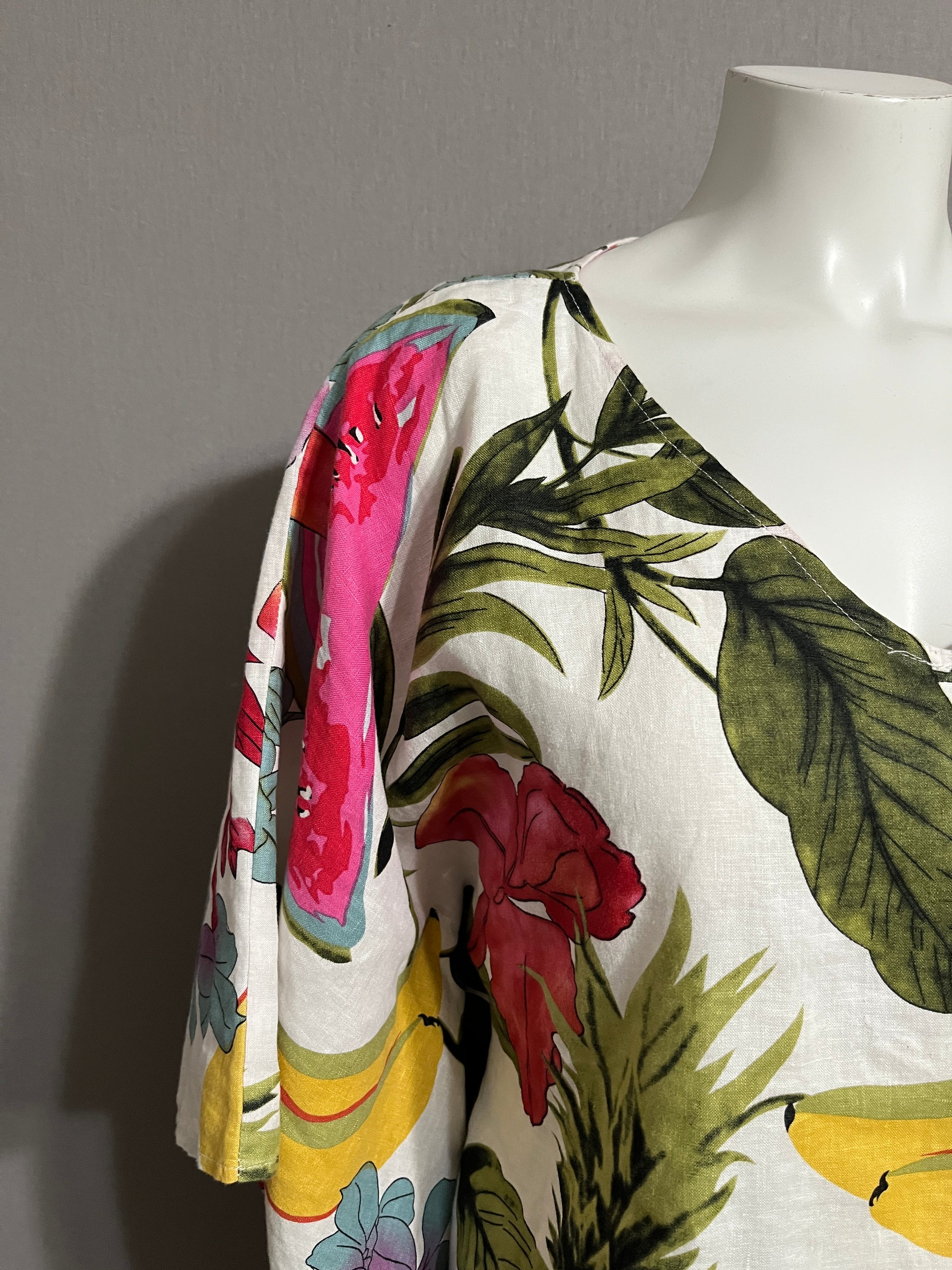 Peck & Peck Linen Fruit Poncho Sz-Small