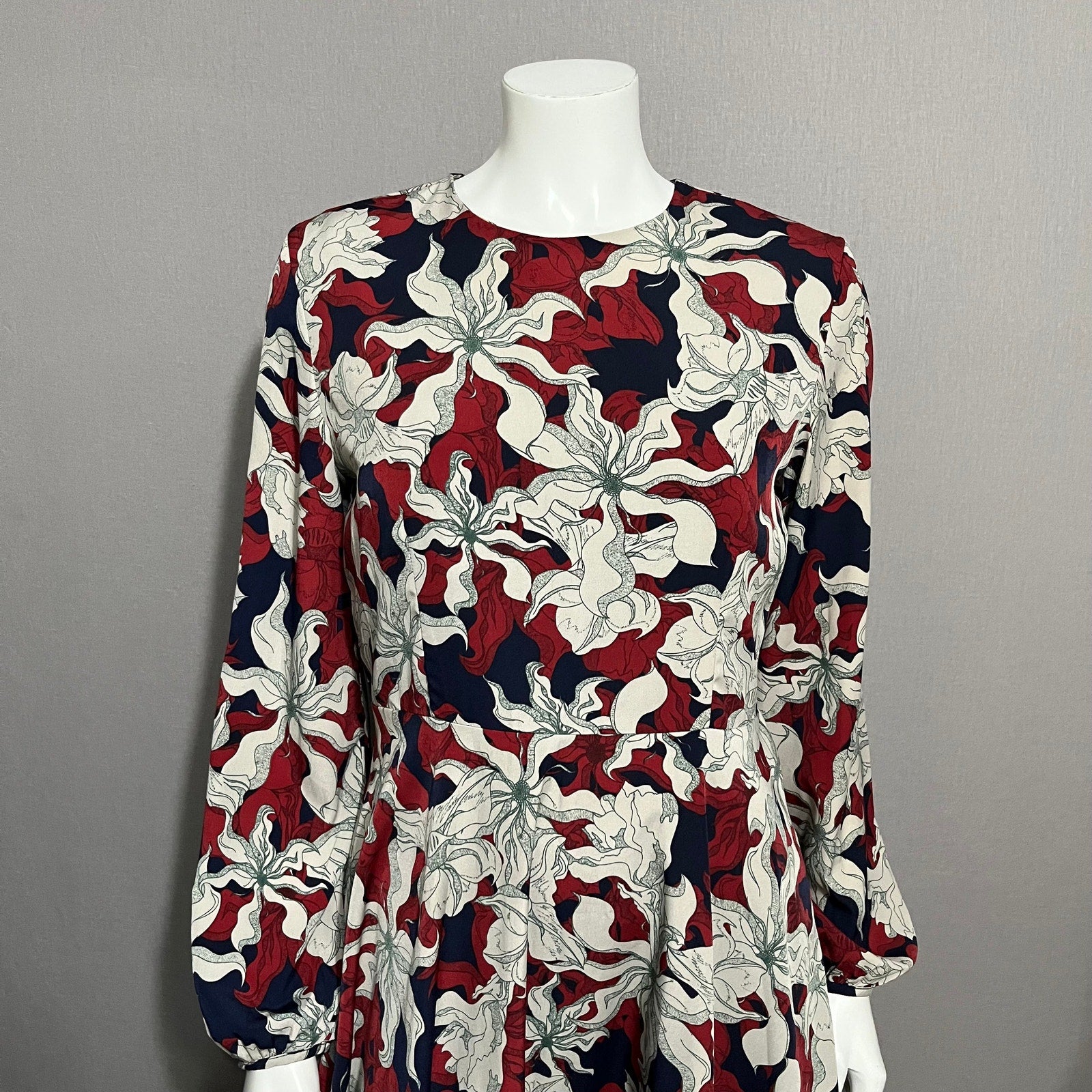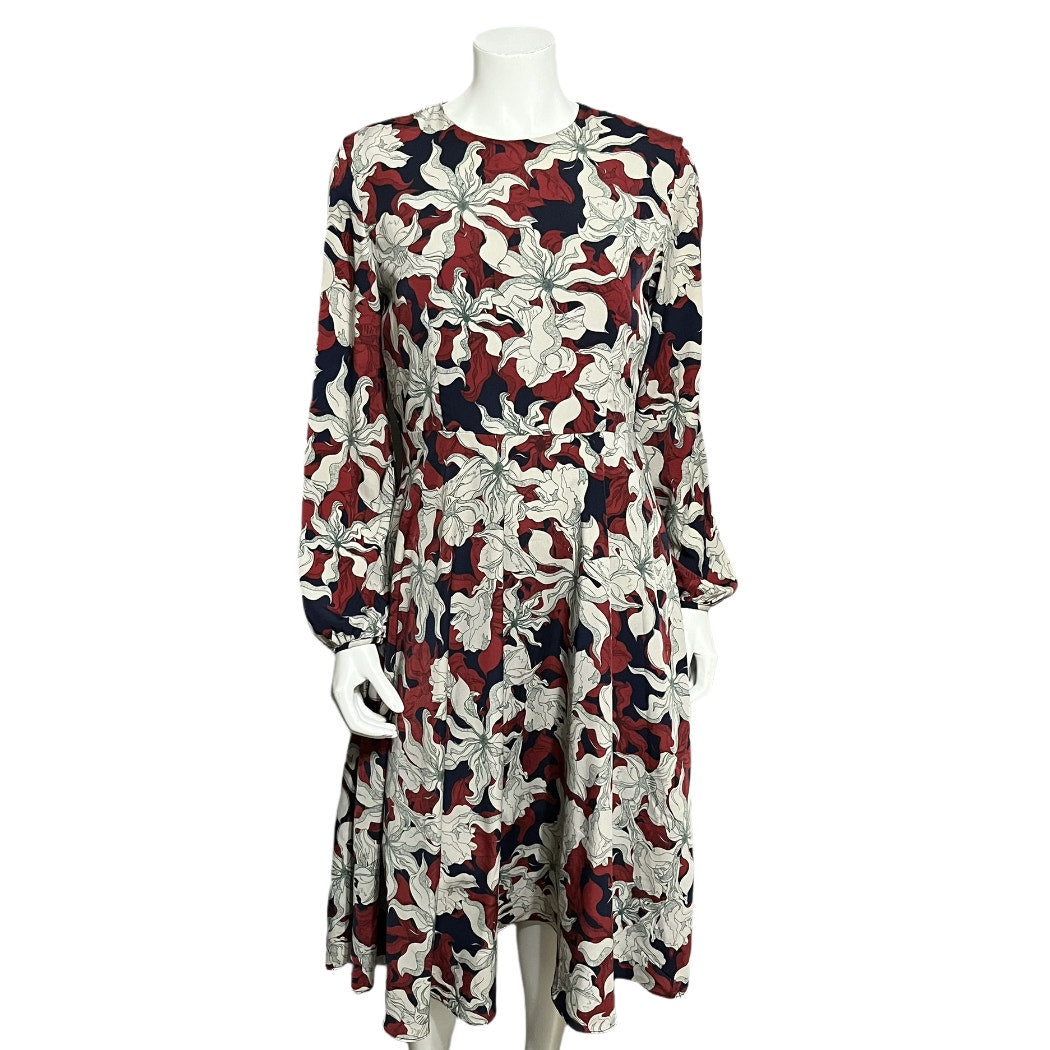 PinkyOtto Gray Maroon Navy Floral Leaf Long Sleeve Dress Sz-8