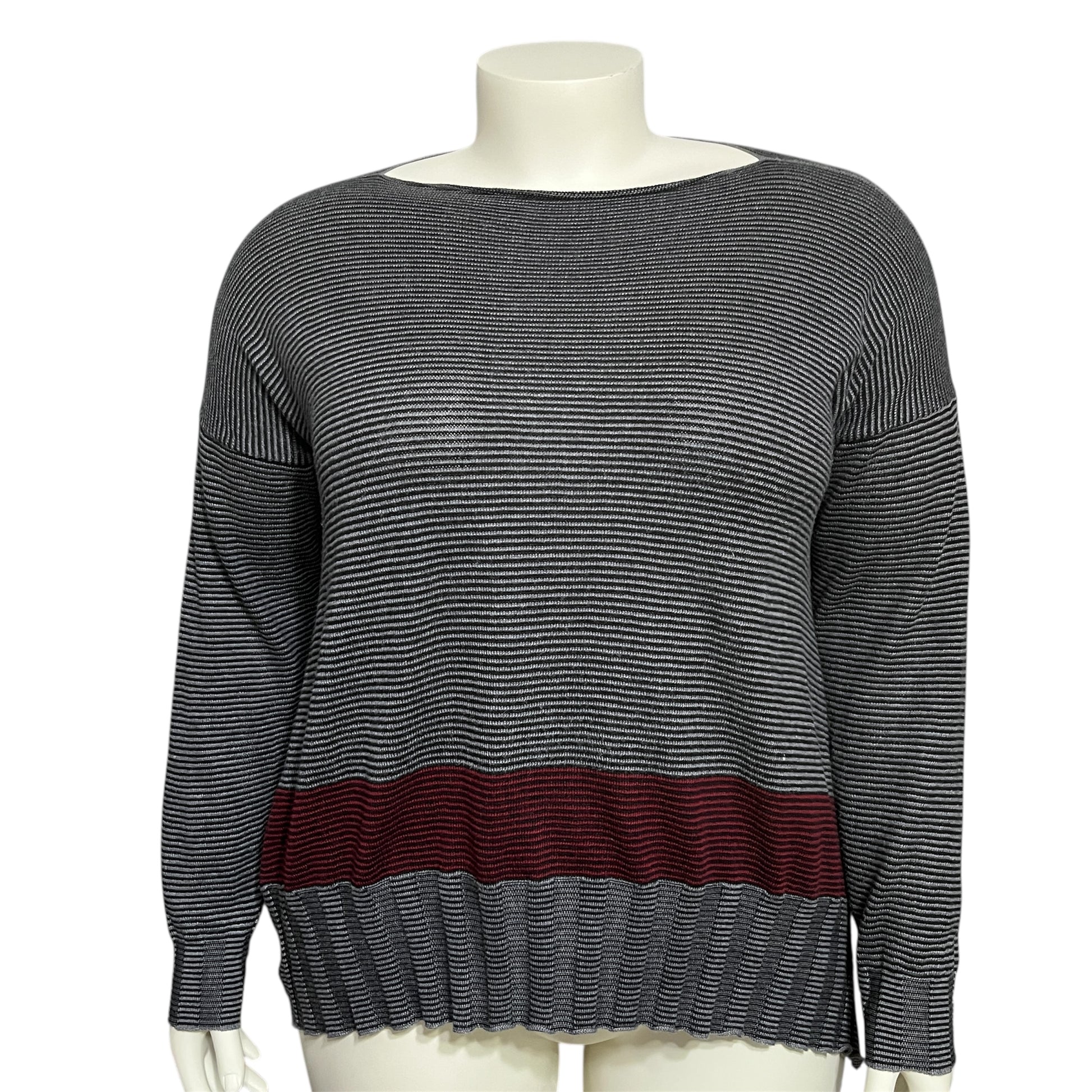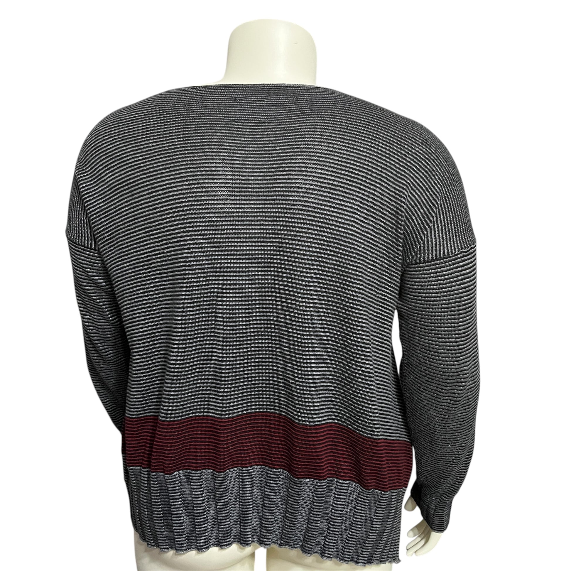 Stylish gray striped sweater by Planet. Perfect for any occasion.