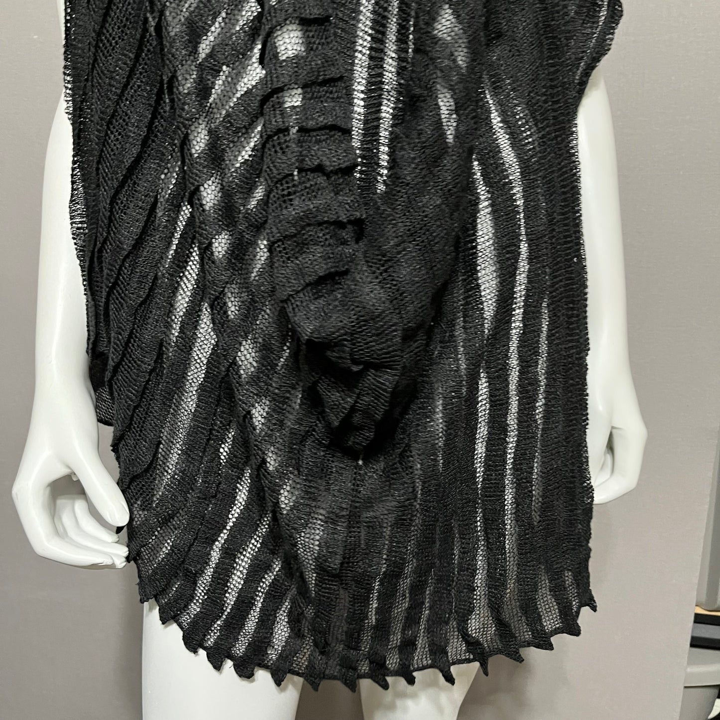 Black Linen Artsy Pintucked Oversized Coverup Top