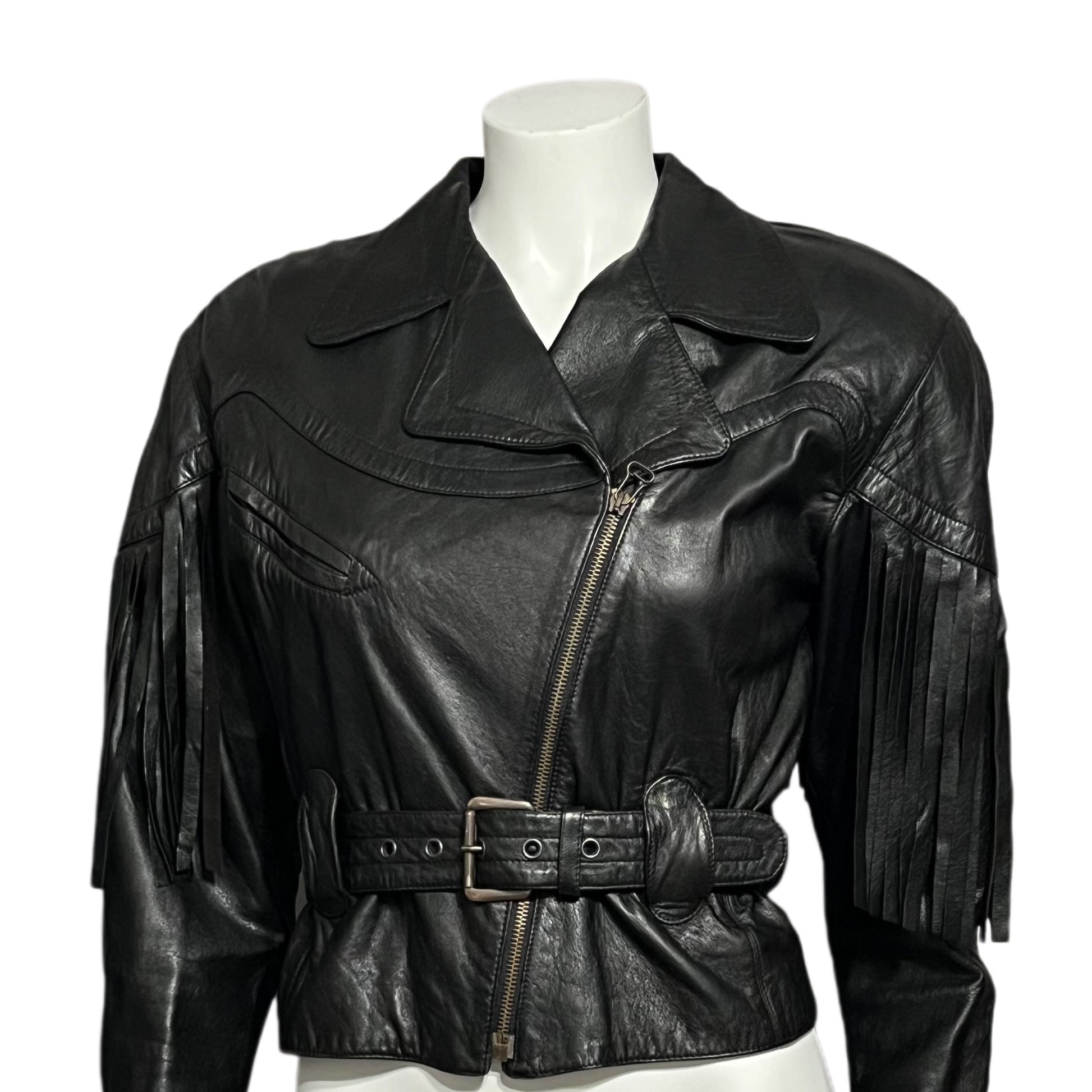 Vintage Begedor Made In Italy Fringe Leather Jacket Sz-Small