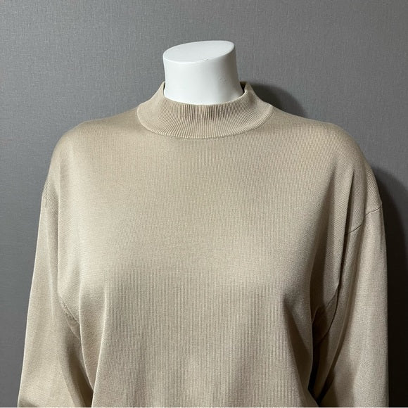 Pronto Uomo Tan Silk | Cotton Blend Mens Mock Neck Sweater Sz-Large