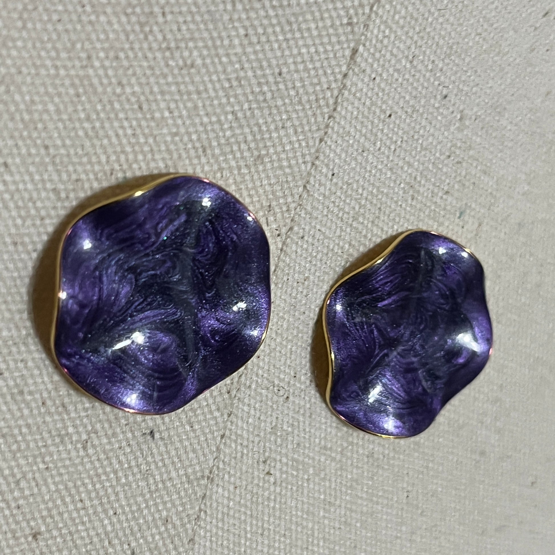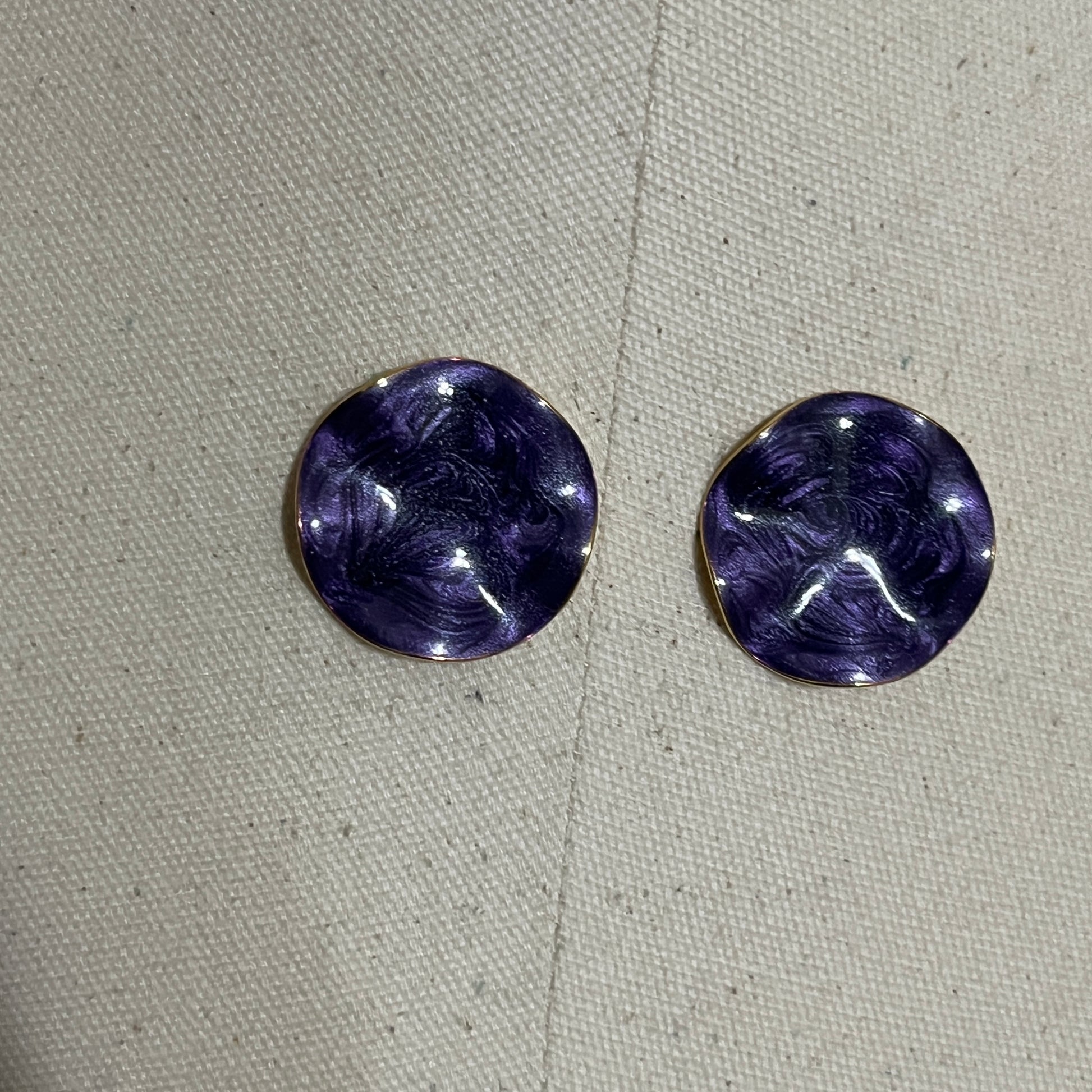 Elegant round earrings in a deep purple hue. Perfect for adding a touch of color to any outfit.
