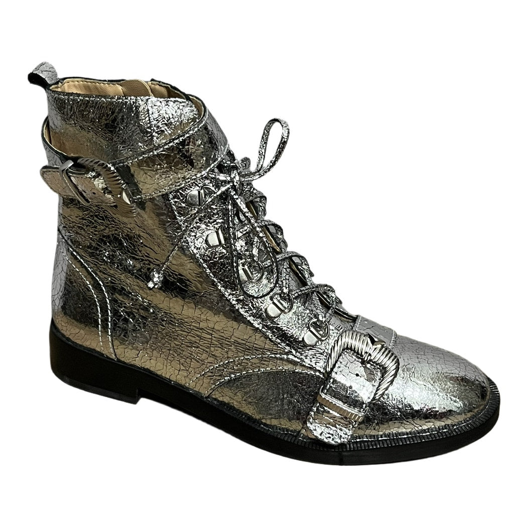 Schutz Silver Metallic Combat Ankle Boots Sz-8