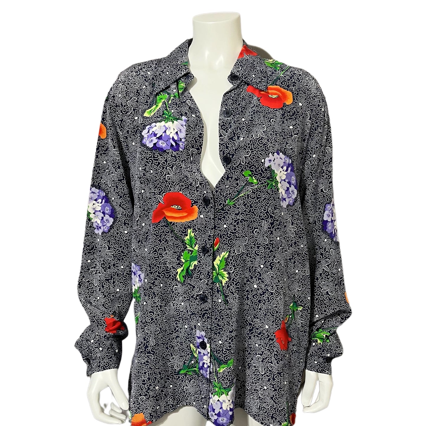 Silk Diane Von Furstenberg Floral Print Button Down Blouse Sz-Medium