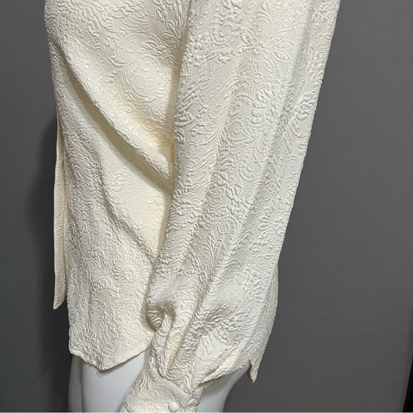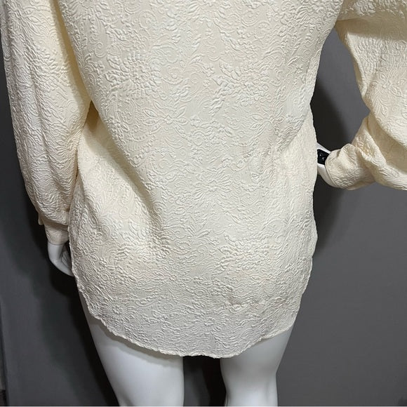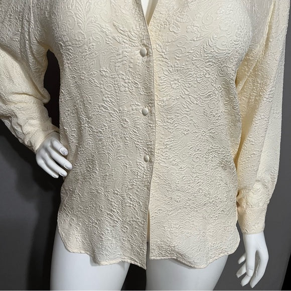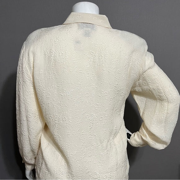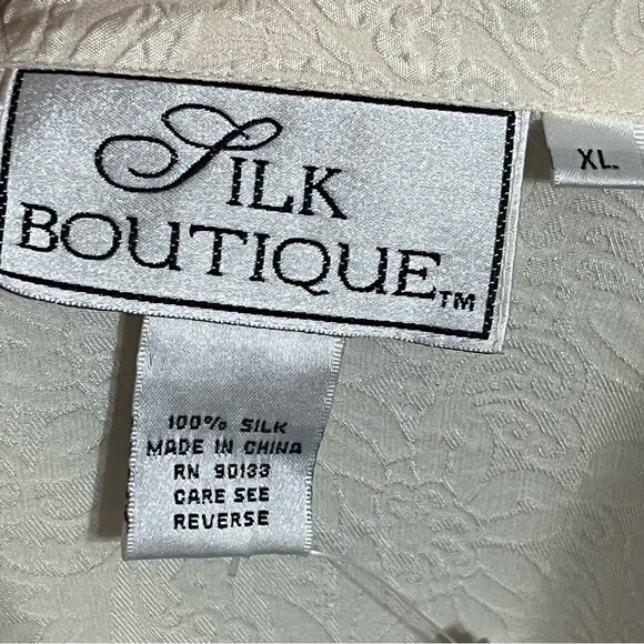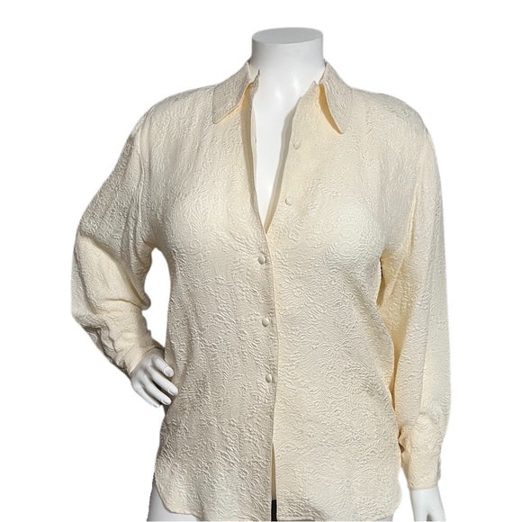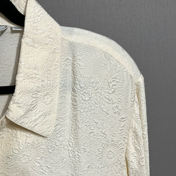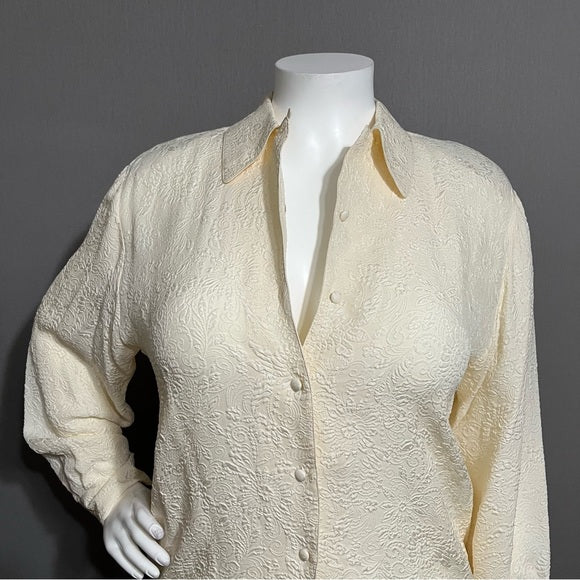 Silk Boutique Cream 100% Silk Textured Floral Blouse Sz-XL