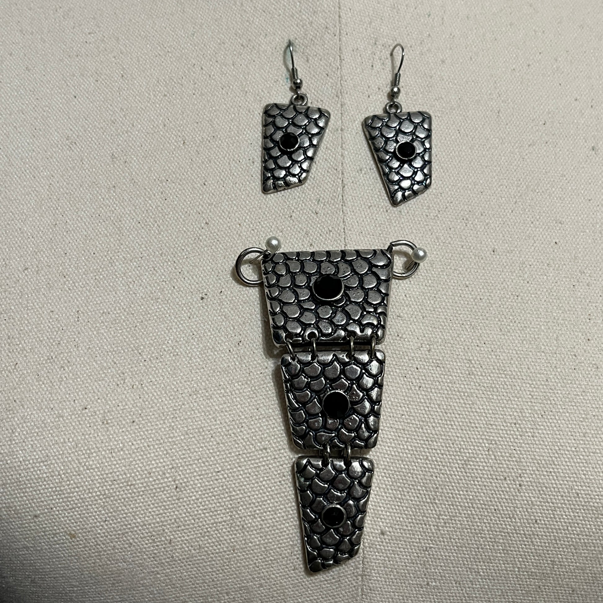 Elegant silver jewelry set featuring a unique textured design. Perfect for adding a touch of sophistication to any outfit.