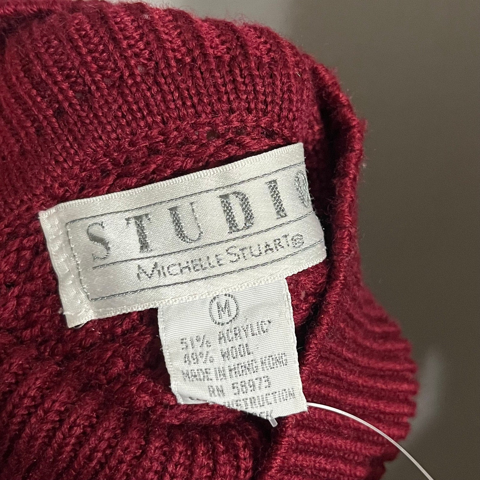Studio Burgundy Chunky Cable Knit Turtleneck Sweater Sz-Medium