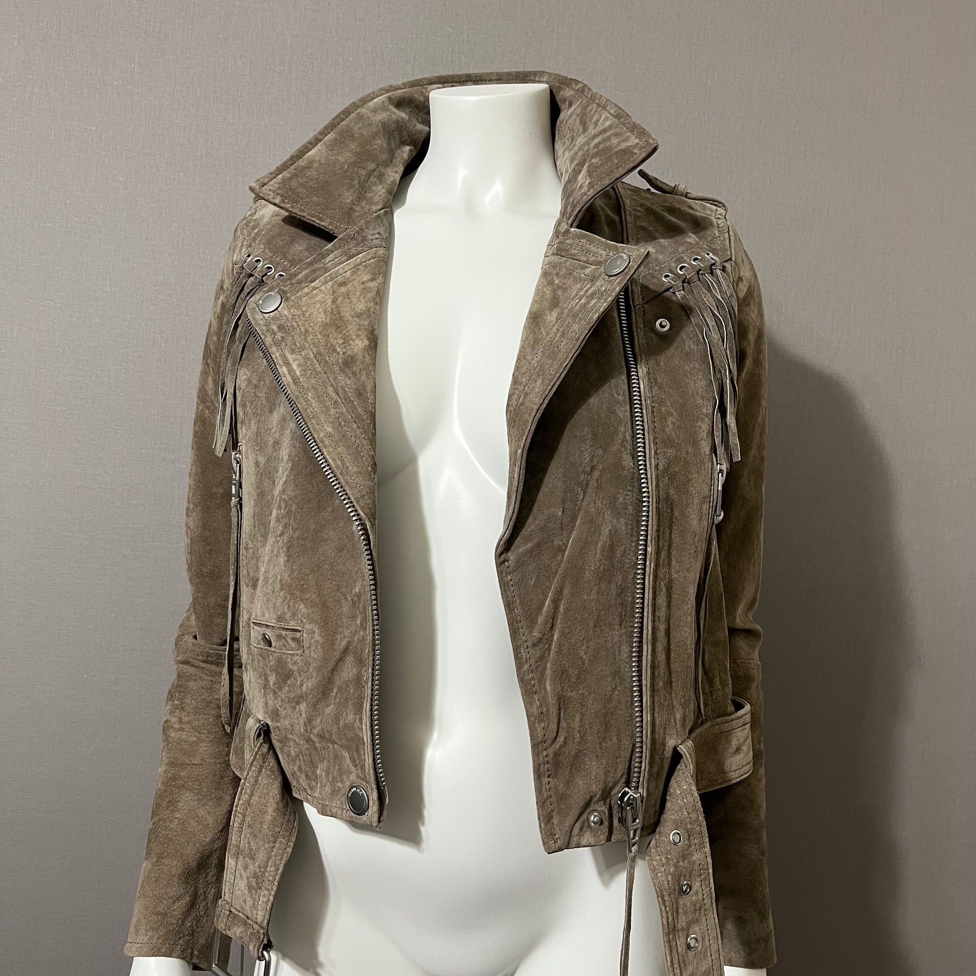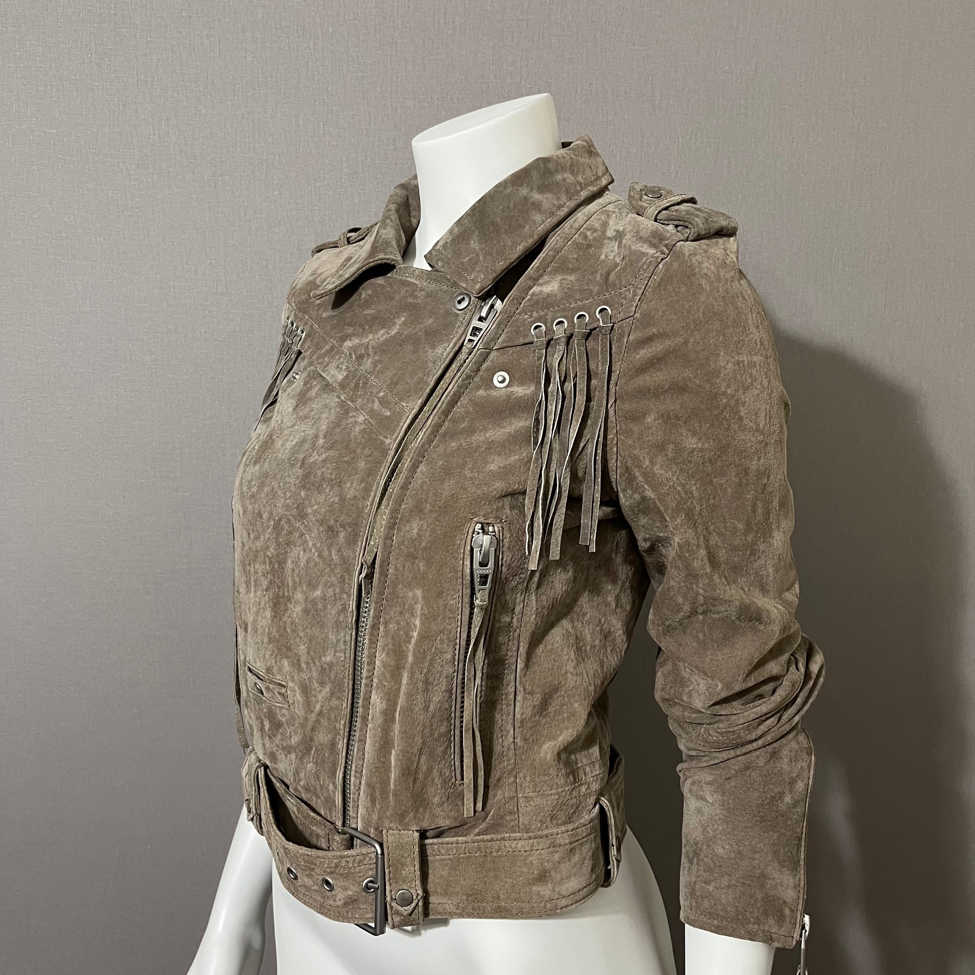 BlankNYC Taupe Suede With Fringe Cropped Jacket Sz-Small