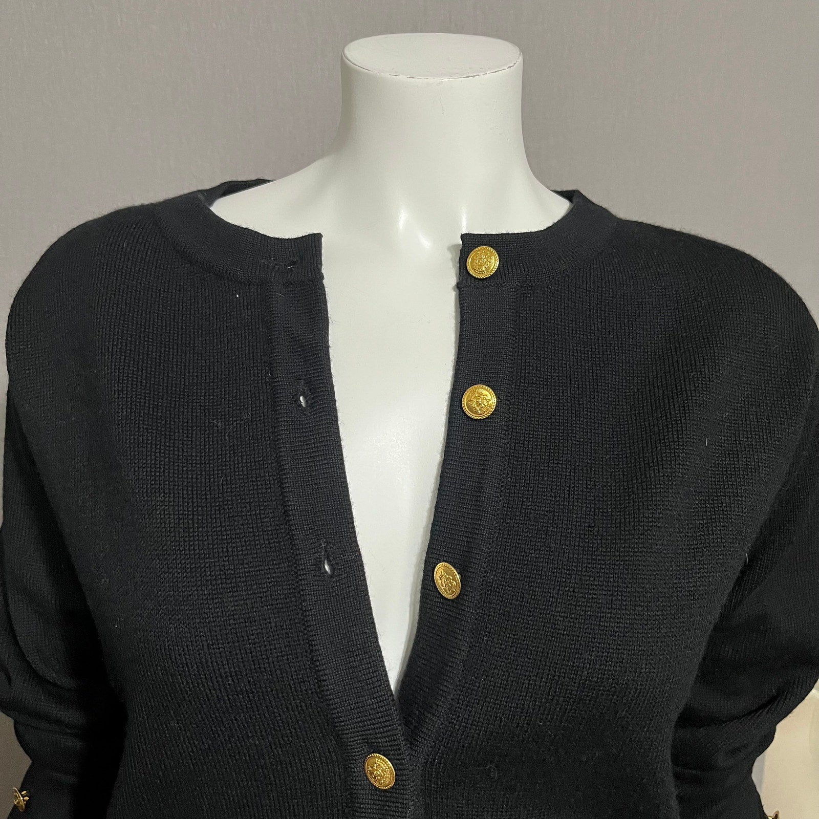 Talbots Black 100% Merino Wool Gold Button Front Cardigan Sz-Small