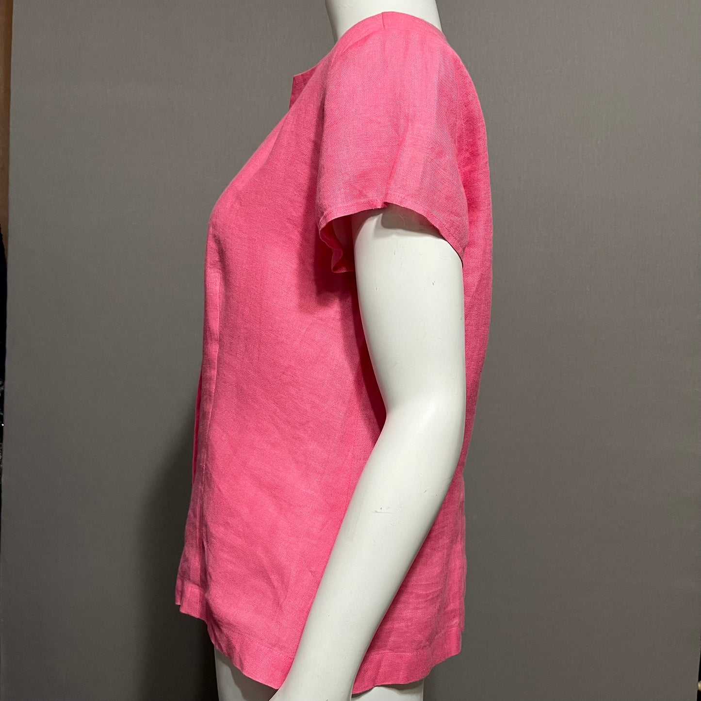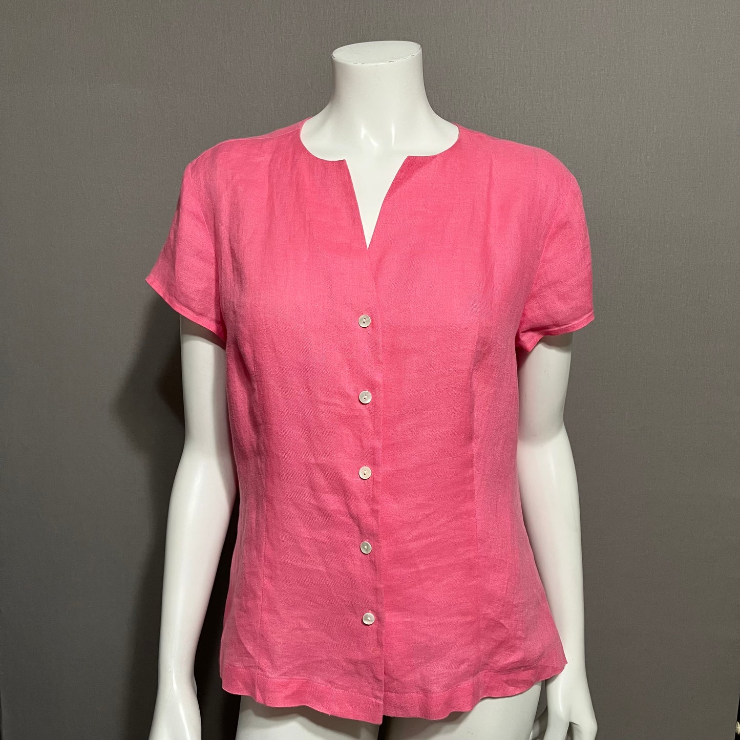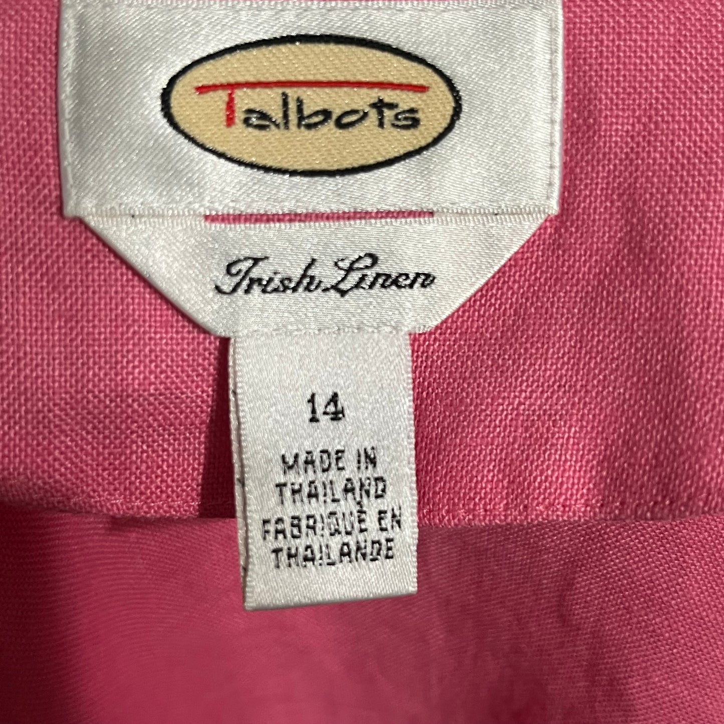 Talbots Pink 100% Linen Button Front Top Sz-14