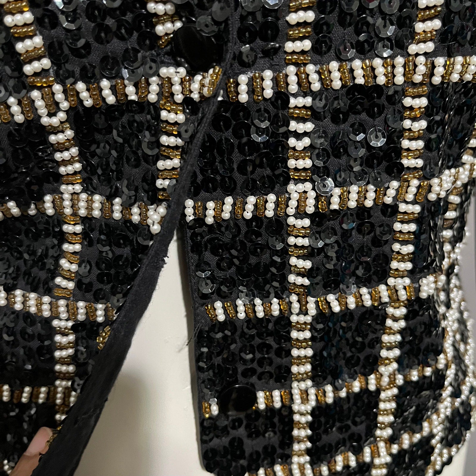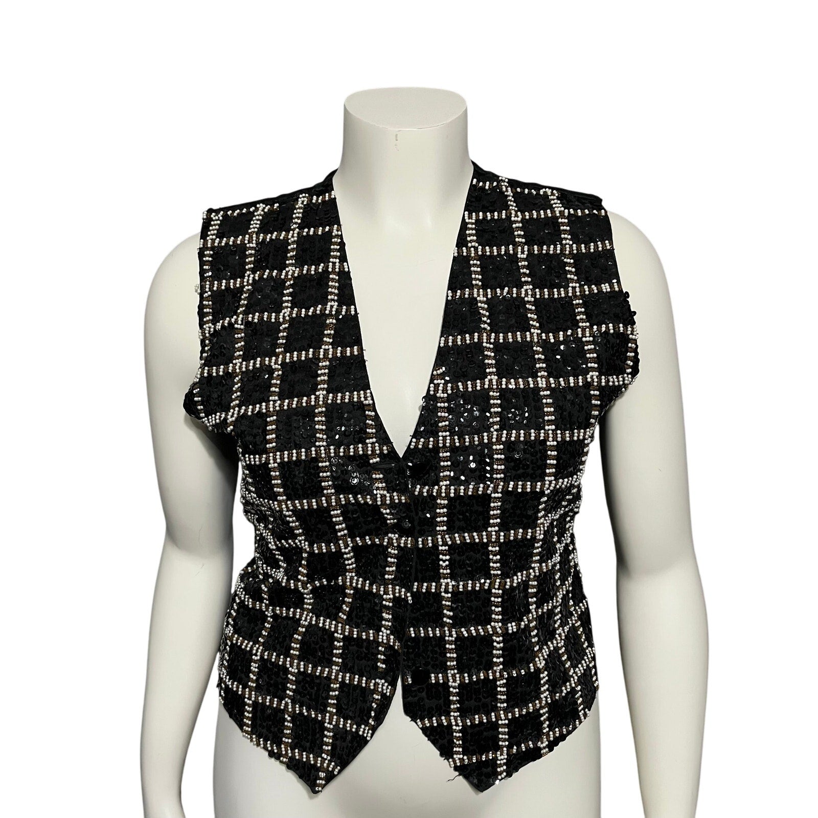 Theo Beaded Gold Black Sequin Square Print Vest Sz-Medium